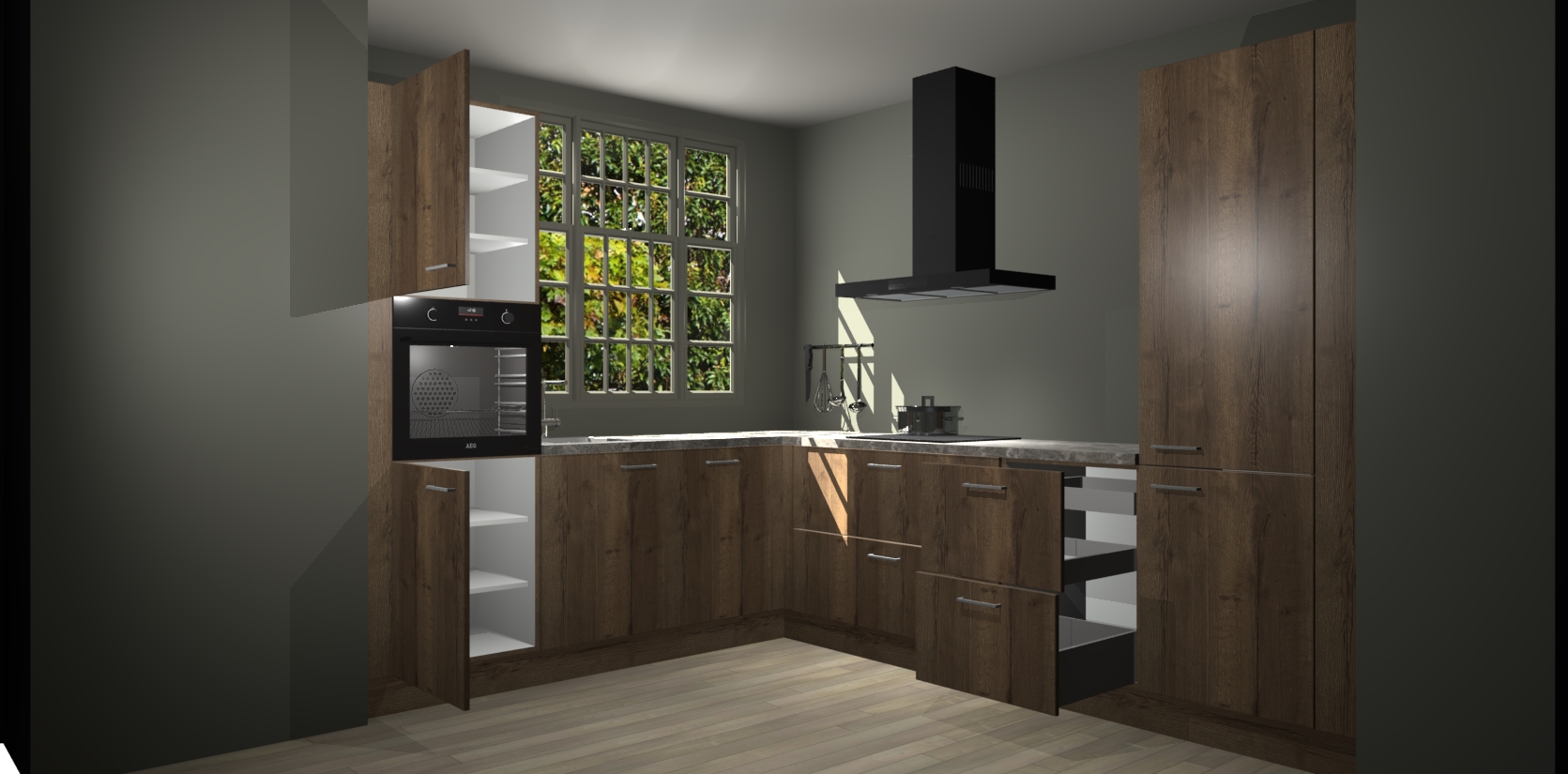 Met een modern, tijdloos design en ruime opslagruimte, zult u zich in no-time thuis voelen in uw nieuwe keuken. Uw leven wordt eenvoudiger met de soft-close deuren die voor het ultieme stille comfort zorgen - geen geluid dat u stoort terwijl u kookt. Ook is de keuken voorzien van 5 ingebouwde apparaten: een oven, inductie kookplaat, afzuigkap, vaatwasser en koelkast. Deze kunnen gemakkelijk na bestelling worden bijgewerkt naar AEG - waardoor uw luxe ervaring compleet is.