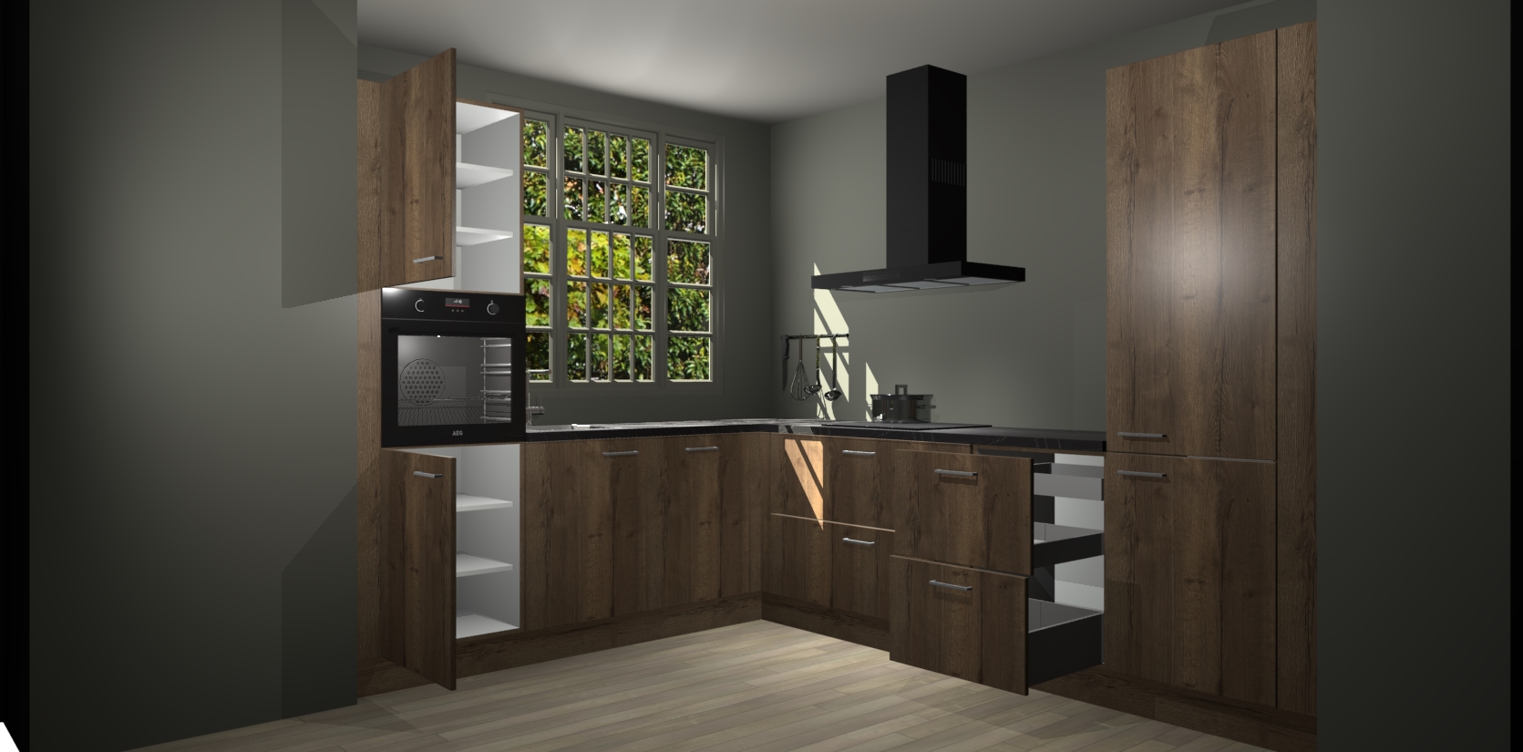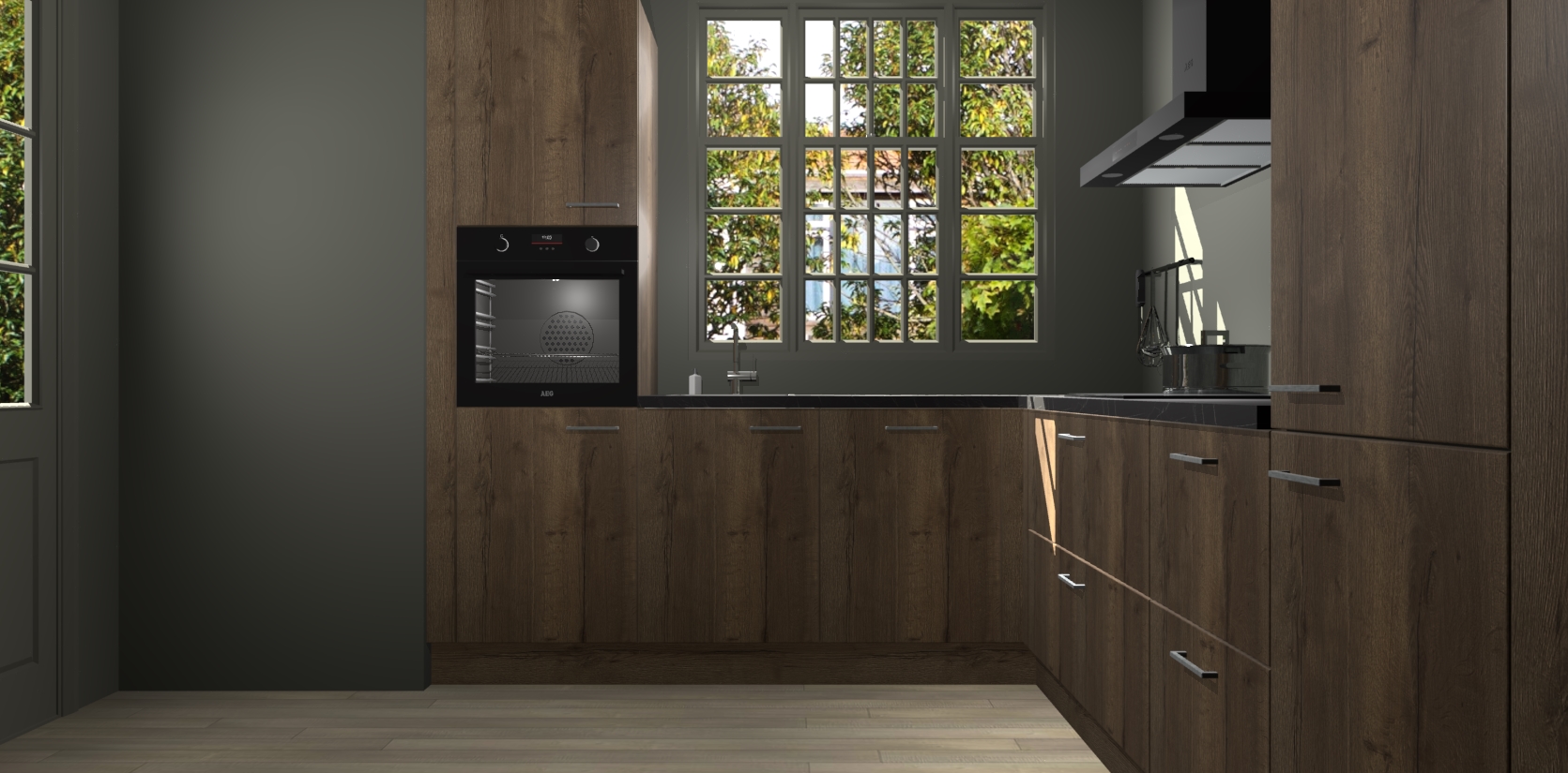 Met een modern, tijdloos design en ruime opslagruimte, zult u zich in no-time thuis voelen in uw nieuwe keuken. Uw leven wordt eenvoudiger met de soft-close deuren die voor het ultieme stille comfort zorgen - geen geluid dat u stoort terwijl u kookt. Ook is de keuken voorzien van 5 ingebouwde apparaten: een oven, inductie kookplaat, afzuigkap, vaatwasser en koelkast. Deze kunnen gemakkelijk na bestelling worden bijgewerkt naar AEG - waardoor uw luxe ervaring compleet is.