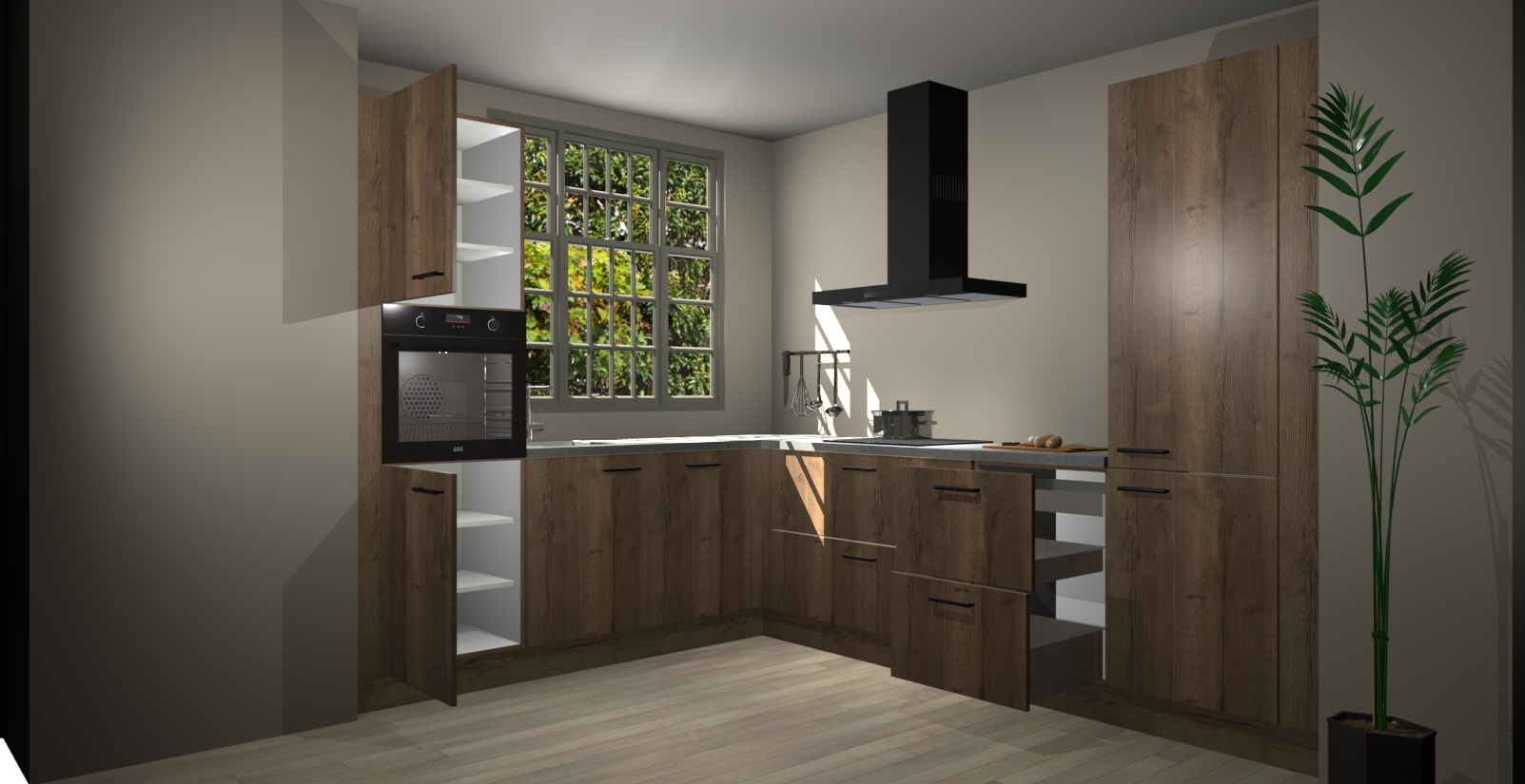 Met een modern, tijdloos design en ruime opslagruimte, zult u zich in no-time thuis voelen in uw nieuwe keuken. Uw leven wordt eenvoudiger met de soft-close deuren die voor het ultieme stille comfort zorgen - geen geluid dat u stoort terwijl u kookt. Ook is de keuken voorzien van 5 ingebouwde apparaten: een oven, inductie kookplaat, afzuigkap, vaatwasser en koelkast. Deze kunnen gemakkelijk na bestelling worden bijgewerkt naar AEG - waardoor uw luxe ervaring compleet is.