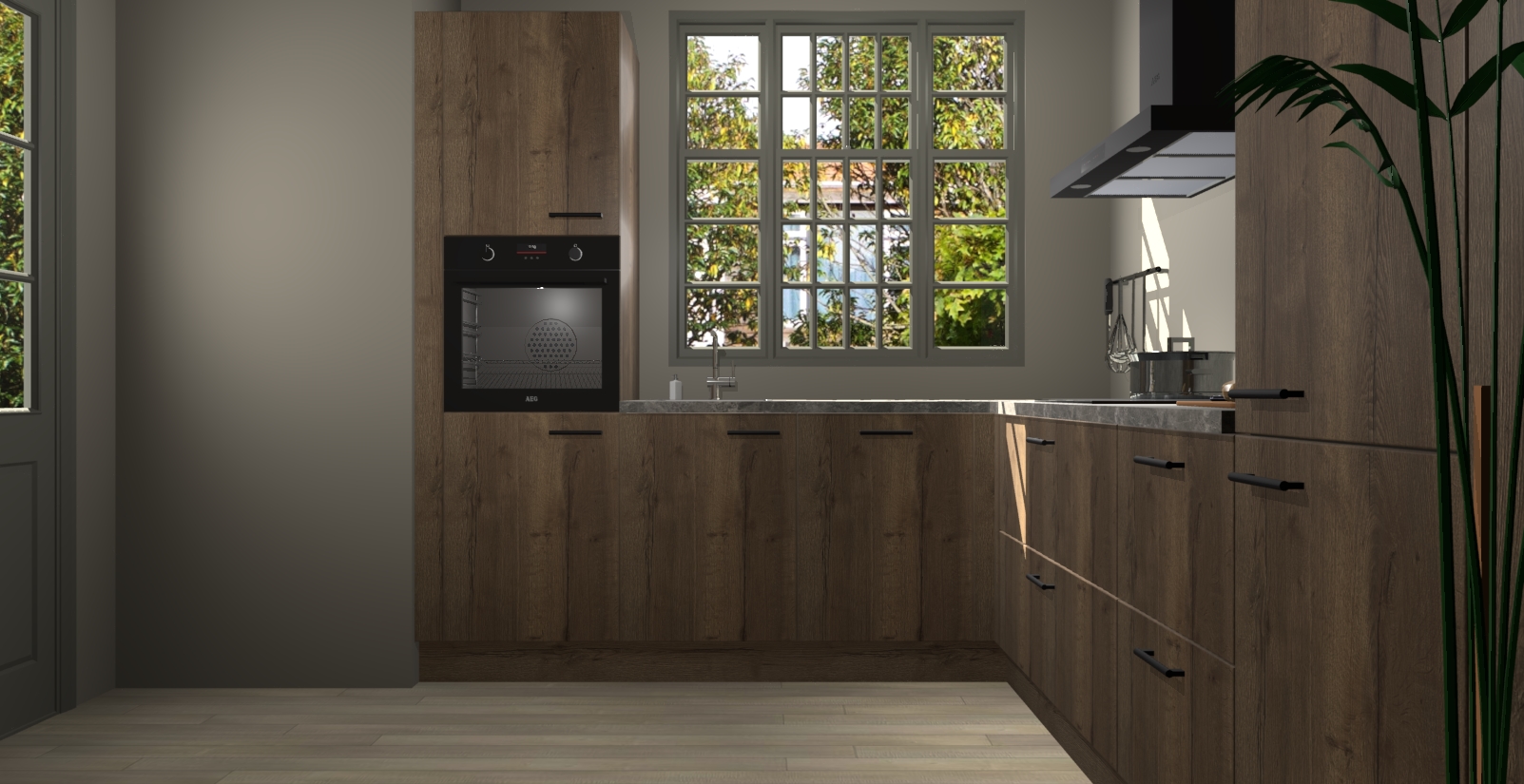 Met een modern, tijdloos design en ruime opslagruimte, zult u zich in no-time thuis voelen in uw nieuwe keuken. Uw leven wordt eenvoudiger met de soft-close deuren die voor het ultieme stille comfort zorgen - geen geluid dat u stoort terwijl u kookt. Ook is de keuken voorzien van 5 ingebouwde apparaten: een oven, inductie kookplaat, afzuigkap, vaatwasser en koelkast. Deze kunnen gemakkelijk na bestelling worden bijgewerkt naar AEG - waardoor uw luxe ervaring compleet is.