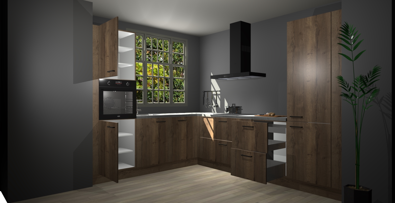 Met een modern, tijdloos design en ruime opslagruimte, zult u zich in no-time thuis voelen in uw nieuwe keuken. Uw leven wordt eenvoudiger met de soft-close deuren die voor het ultieme stille comfort zorgen - geen geluid dat u stoort terwijl u kookt. Ook is de keuken voorzien van 5 ingebouwde apparaten: een oven, inductie kookplaat, afzuigkap, vaatwasser en koelkast. Deze kunnen gemakkelijk na bestelling worden bijgewerkt naar AEG - waardoor uw luxe ervaring compleet is.