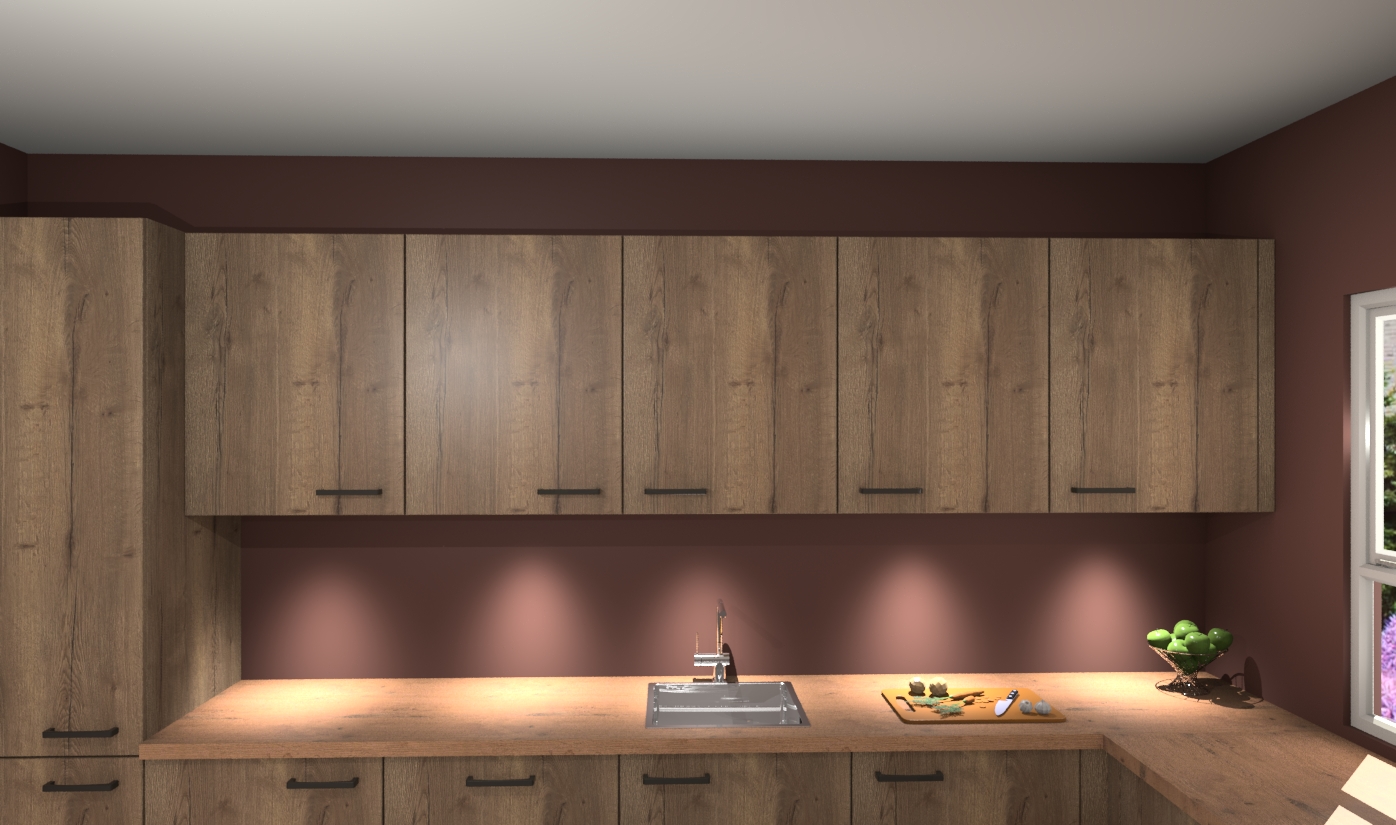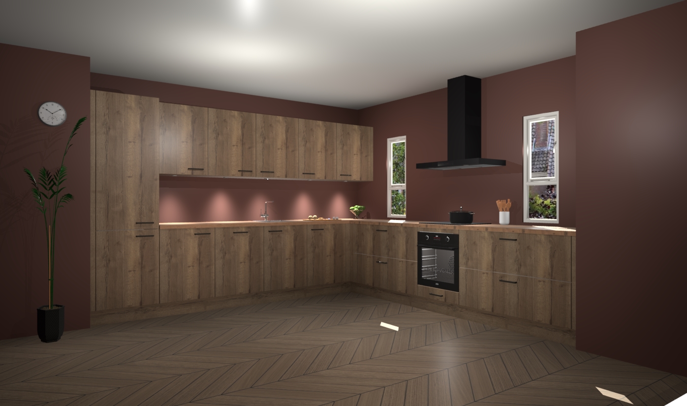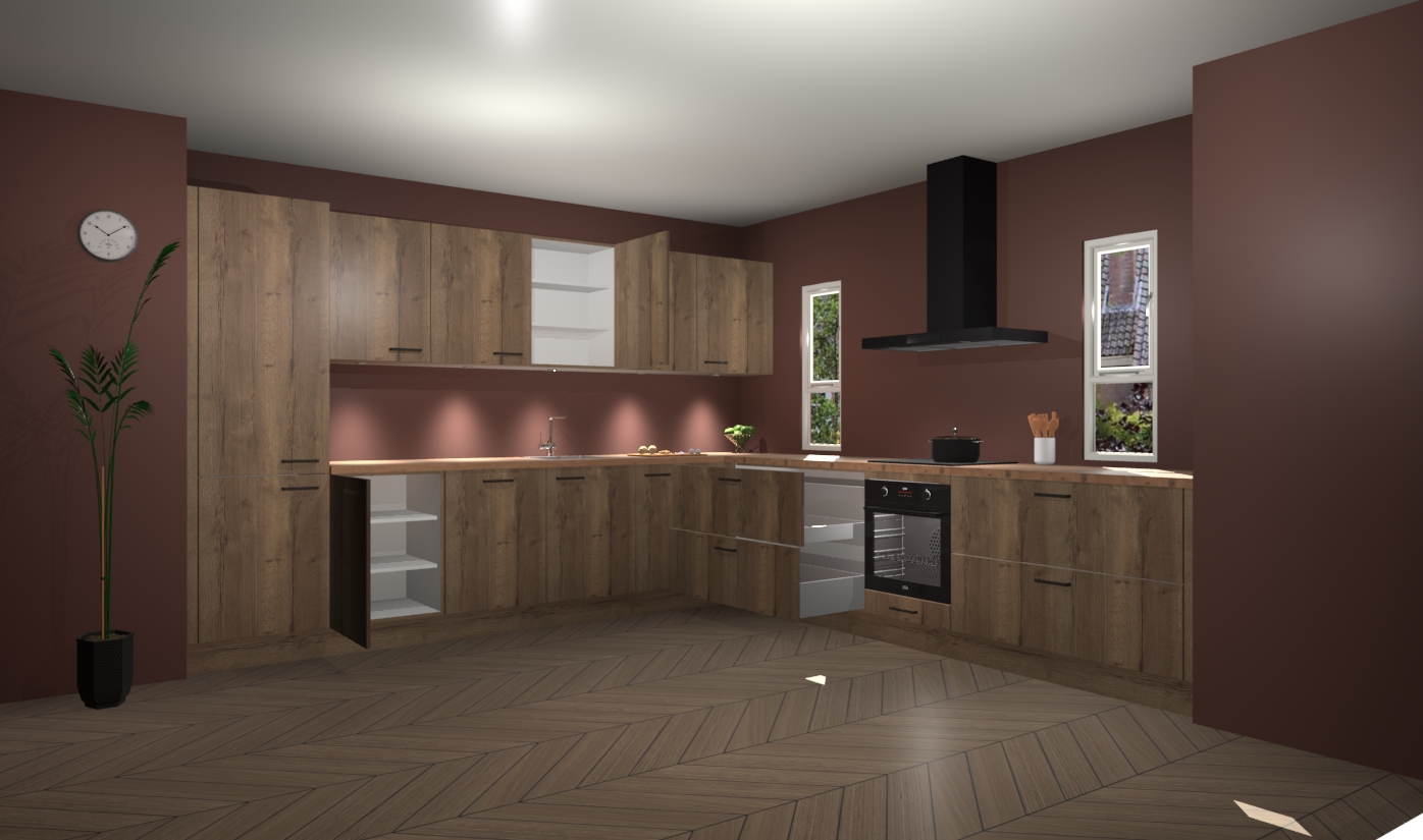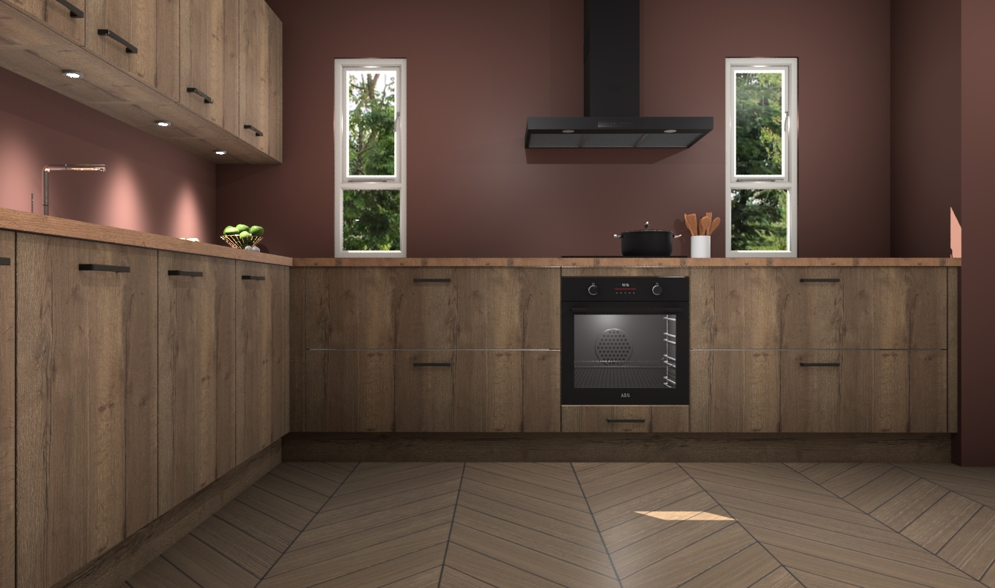 De chocolade eiken keuken is een ideale hoekkeuken en heeft alle functies en apparatuur die u maar nodig kunt hebben. Bij de bestelling krijgt u een oven, inductiekookplaat, afzuigkap, vaatwasser en koelkast - deze kunnen desgewenst eenvoudig worden uitgebreid naar AEG na bestellen. Elke kast wordt ook voor gemonteerd geleverd met soft close deuren die jarenlang gebruik beloven. Stelt u zich voor dat u geen gedoe heeft met vervelende montage - vanaf het moment dat u uw bestelling plaats, duurt het slechts 7 weken voor het bij u thuis geleverd wordt.