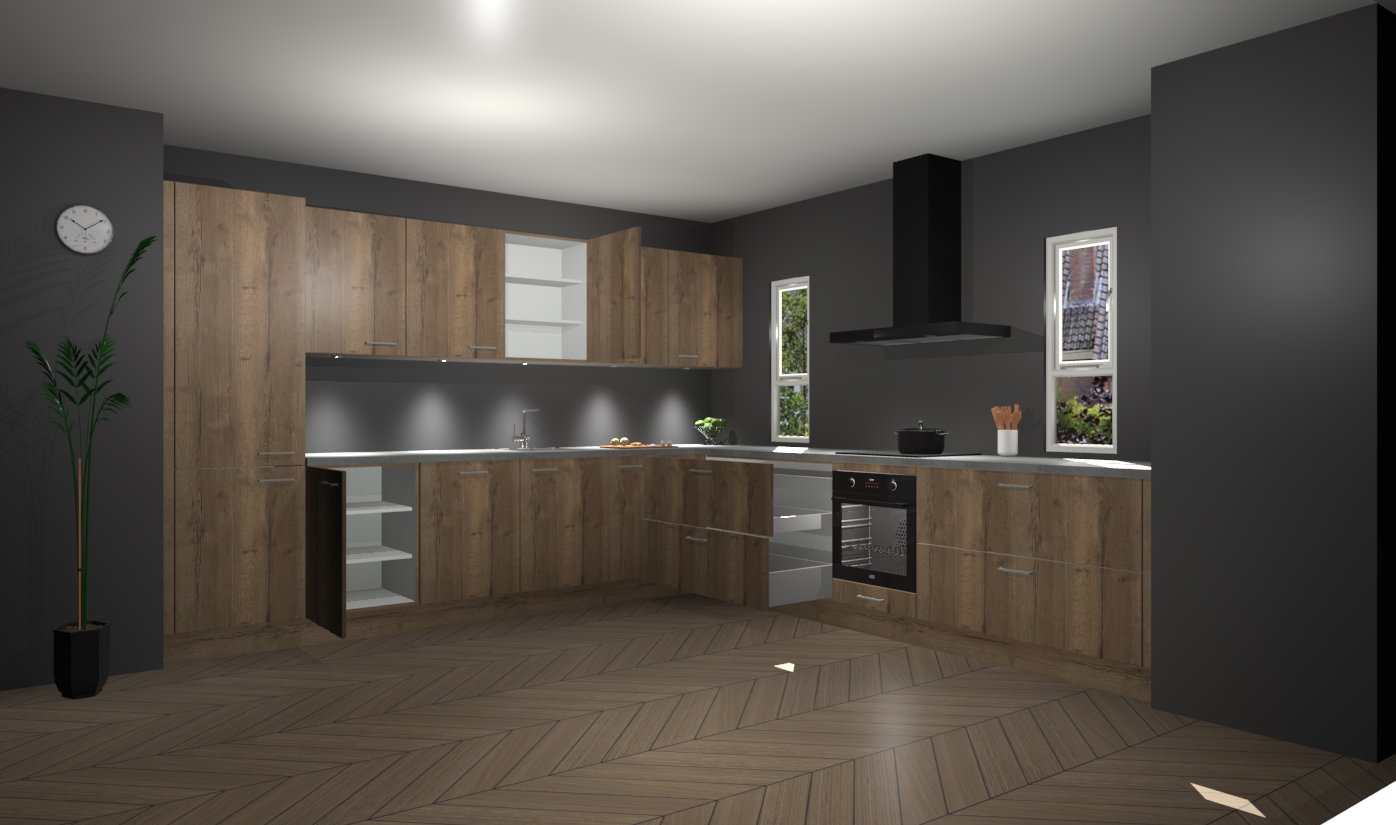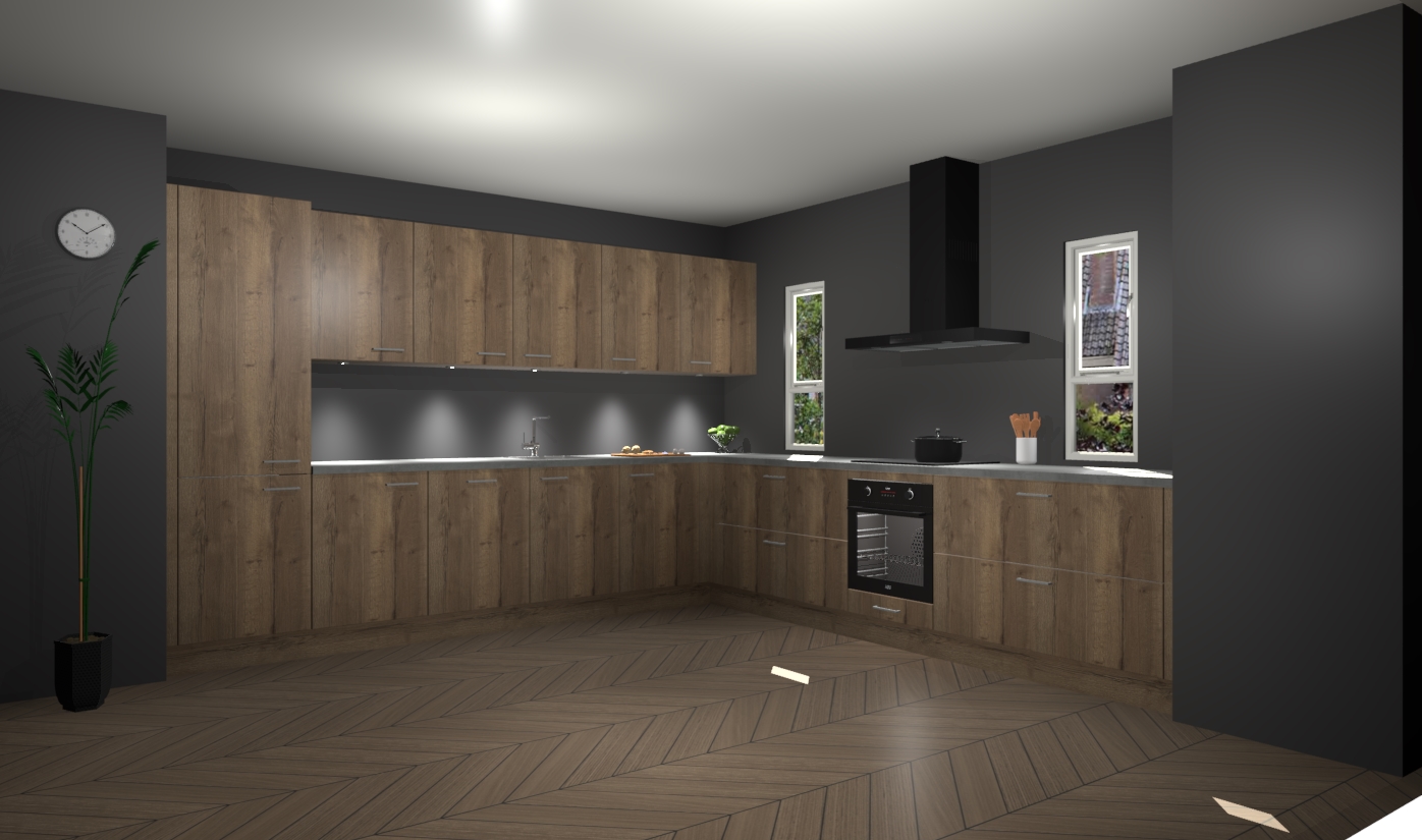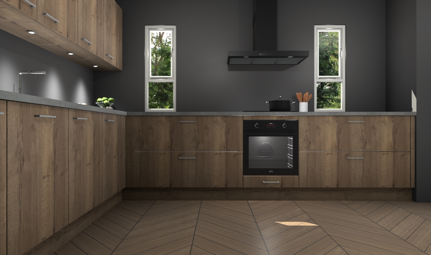 De chocolade eiken keuken is een ideale hoekkeuken en heeft alle functies en apparatuur die u maar nodig kunt hebben. Bij de bestelling krijgt u een oven, inductiekookplaat, afzuigkap, vaatwasser en koelkast - deze kunnen desgewenst eenvoudig worden uitgebreid naar AEG na bestellen. Elke kast wordt ook voor gemonteerd geleverd met soft close deuren die jarenlang gebruik beloven. Stelt u zich voor dat u geen gedoe heeft met vervelende montage - vanaf het moment dat u uw bestelling plaats, duurt het slechts 7 weken voor het bij u thuis geleverd wordt.