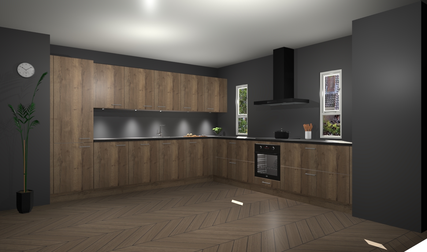 De chocolade eiken keuken is een ideale hoekkeuken en heeft alle functies en apparatuur die u maar nodig kunt hebben. Bij de bestelling krijgt u een oven, inductiekookplaat, afzuigkap, vaatwasser en koelkast - deze kunnen desgewenst eenvoudig worden uitgebreid naar AEG na bestellen. Elke kast wordt ook voor gemonteerd geleverd met soft close deuren die jarenlang gebruik beloven. Stelt u zich voor dat u geen gedoe heeft met vervelende montage - vanaf het moment dat u uw bestelling plaats, duurt het slechts 7 weken voor het bij u thuis geleverd wordt.