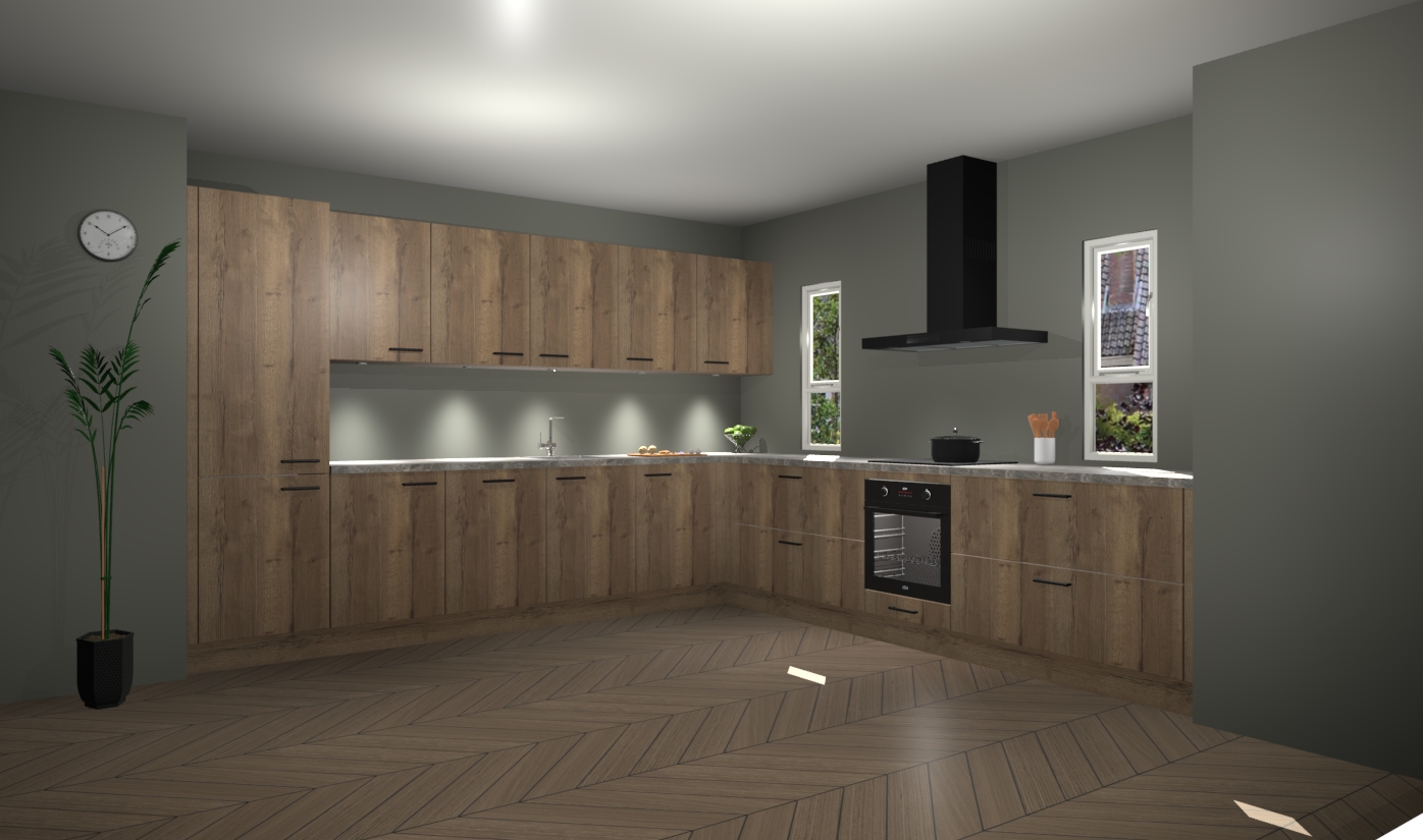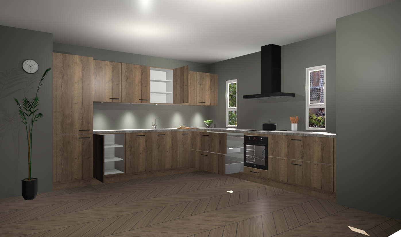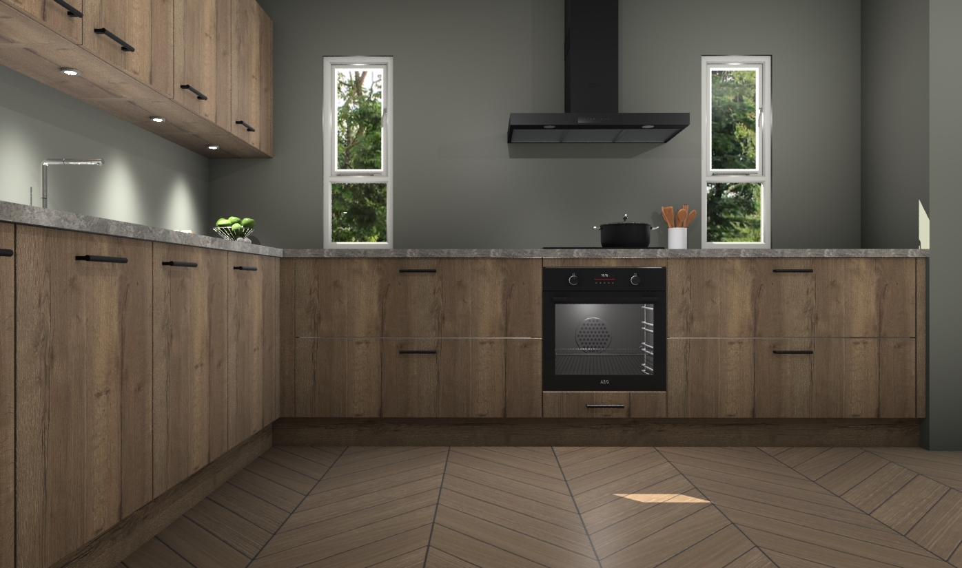 De chocolade eiken keuken is een ideale hoekkeuken en heeft alle functies en apparatuur die u maar nodig kunt hebben. Bij de bestelling krijgt u een oven, inductiekookplaat, afzuigkap, vaatwasser en koelkast - deze kunnen desgewenst eenvoudig worden uitgebreid naar AEG na bestellen. Elke kast wordt ook voor gemonteerd geleverd met soft close deuren die jarenlang gebruik beloven. Stelt u zich voor dat u geen gedoe heeft met vervelende montage - vanaf het moment dat u uw bestelling plaats, duurt het slechts 7 weken voor het bij u thuis geleverd wordt.