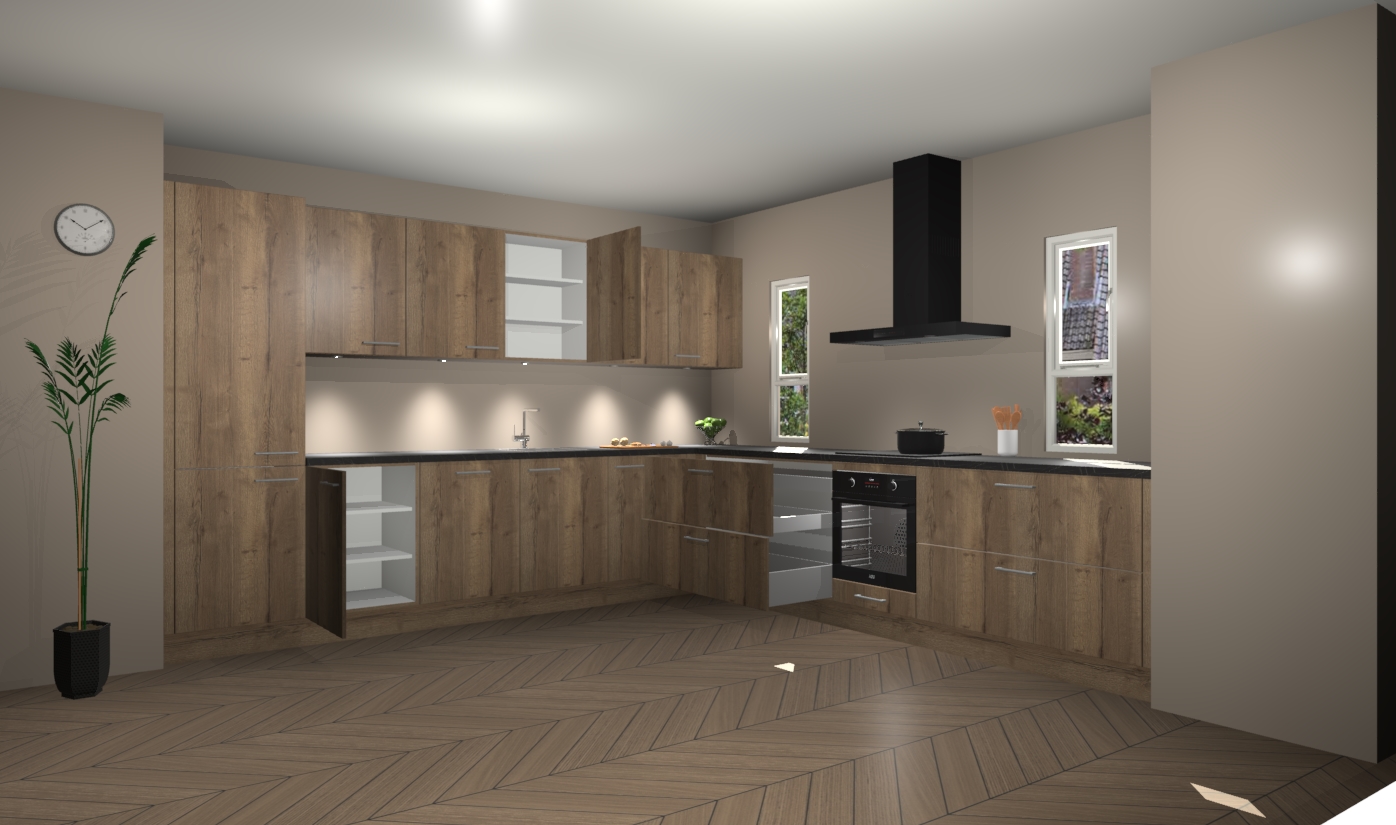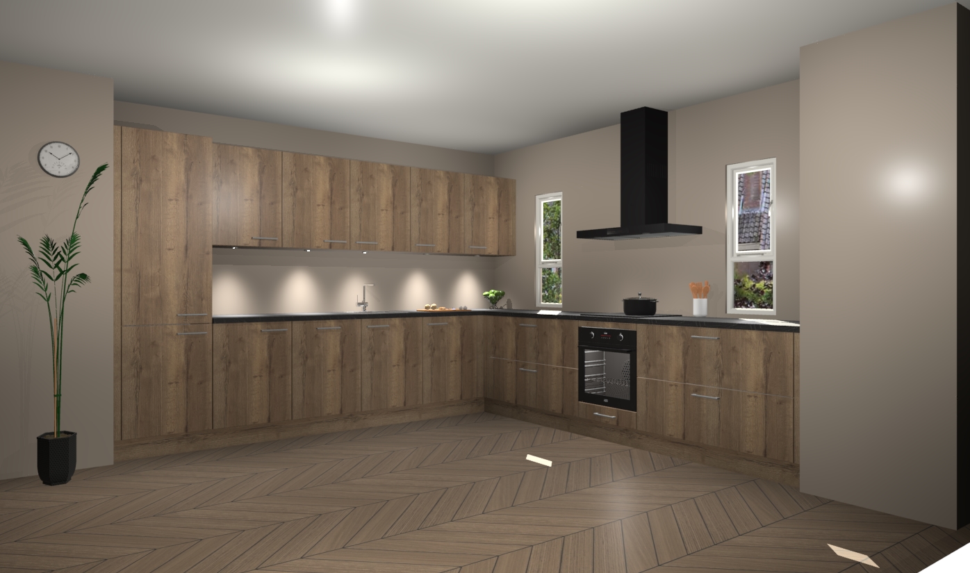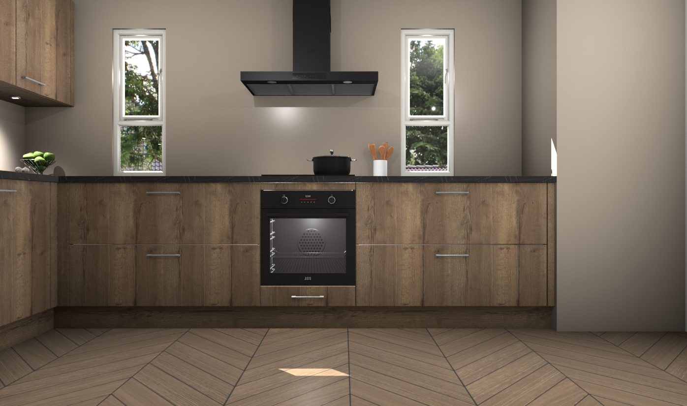 De chocolade eiken keuken is een ideale hoekkeuken en heeft alle functies en apparatuur die u maar nodig kunt hebben. Bij de bestelling krijgt u een oven, inductiekookplaat, afzuigkap, vaatwasser en koelkast - deze kunnen desgewenst eenvoudig worden uitgebreid naar AEG na bestellen. Elke kast wordt ook voor gemonteerd geleverd met soft close deuren die jarenlang gebruik beloven. Stelt u zich voor dat u geen gedoe heeft met vervelende montage - vanaf het moment dat u uw bestelling plaats, duurt het slechts 7 weken voor het bij u thuis geleverd wordt.