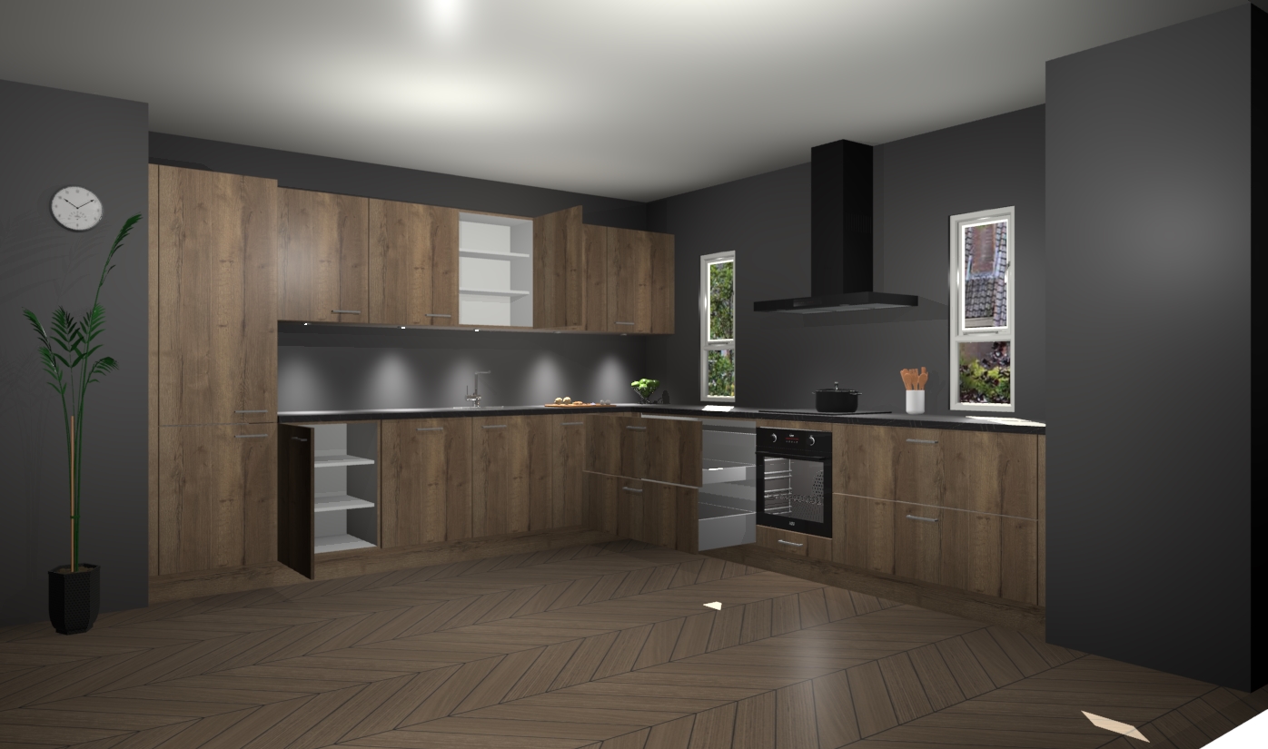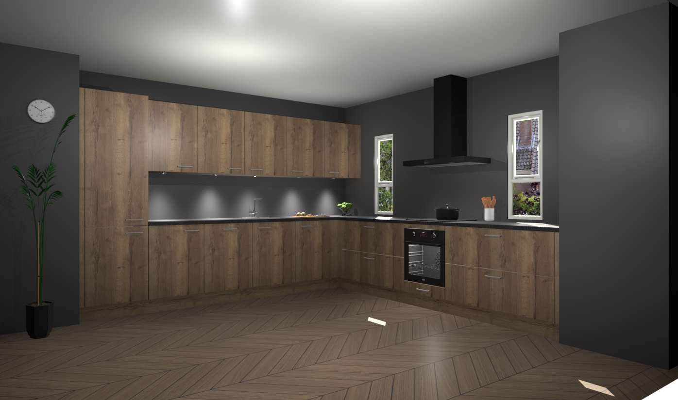 De chocolade eiken keuken is een ideale hoekkeuken en heeft alle functies en apparatuur die u maar nodig kunt hebben. Bij de bestelling krijgt u een oven, inductiekookplaat, afzuigkap, vaatwasser en koelkast - deze kunnen desgewenst eenvoudig worden uitgebreid naar AEG na bestellen. Elke kast wordt ook voor gemonteerd geleverd met soft close deuren die jarenlang gebruik beloven. Stelt u zich voor dat u geen gedoe heeft met vervelende montage - vanaf het moment dat u uw bestelling plaats, duurt het slechts 7 weken voor het bij u thuis geleverd wordt.