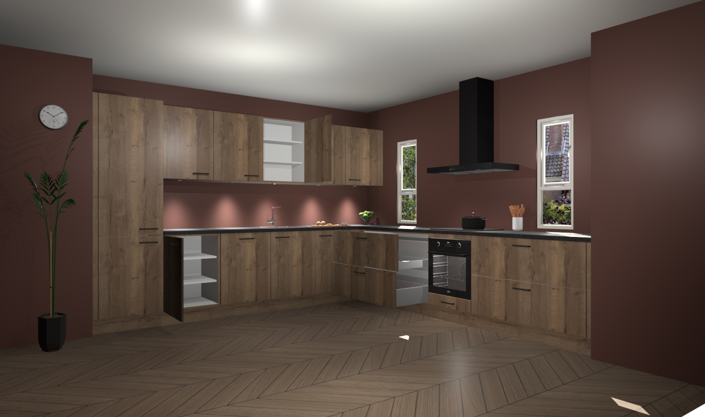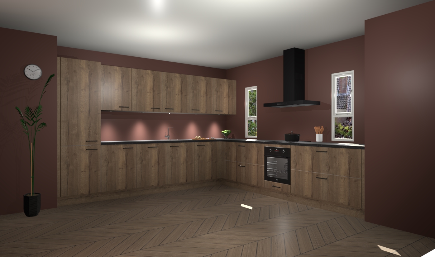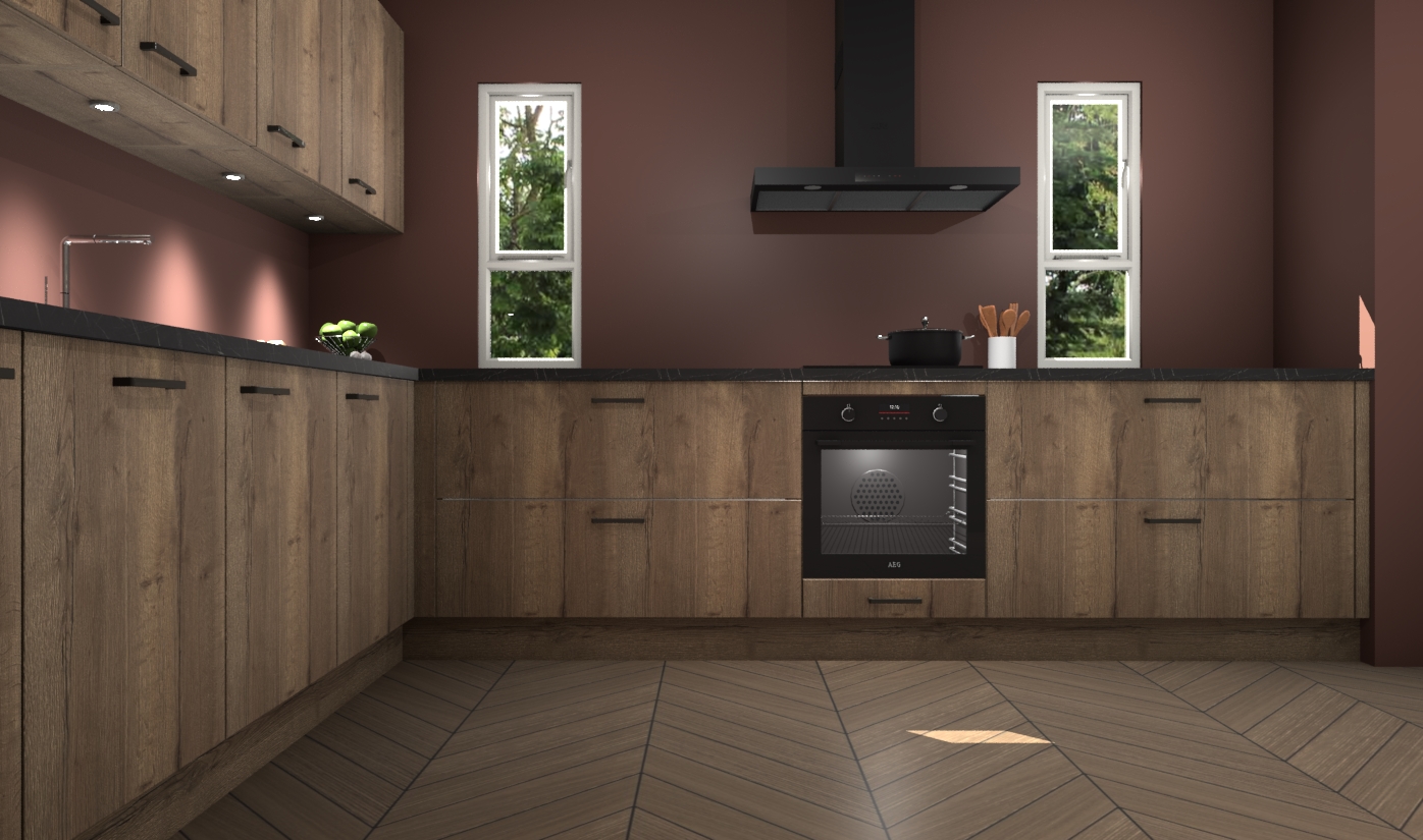 De chocolade eiken keuken is een ideale hoekkeuken en heeft alle functies en apparatuur die u maar nodig kunt hebben. Bij de bestelling krijgt u een oven, inductiekookplaat, afzuigkap, vaatwasser en koelkast - deze kunnen desgewenst eenvoudig worden uitgebreid naar AEG na bestellen. Elke kast wordt ook voor gemonteerd geleverd met soft close deuren die jarenlang gebruik beloven. Stelt u zich voor dat u geen gedoe heeft met vervelende montage - vanaf het moment dat u uw bestelling plaats, duurt het slechts 7 weken voor het bij u thuis geleverd wordt.