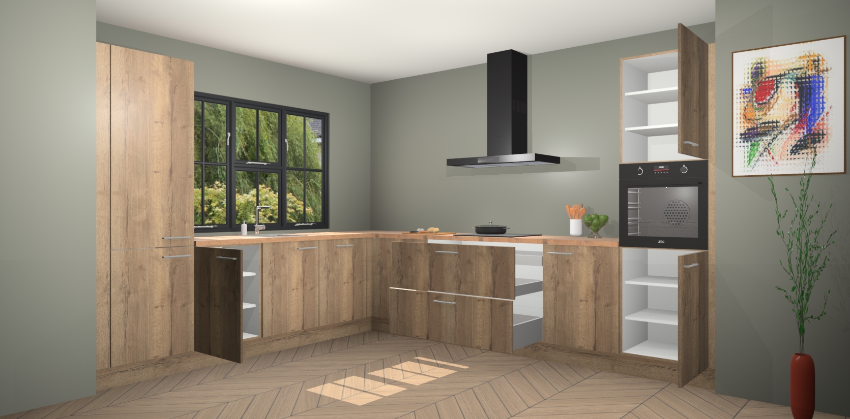 In deze box zijn alle kleuren verzameld van de deuren en werkbladen. Vraag de gratis kleurenbox aan en kijk thuis rustig verder!
