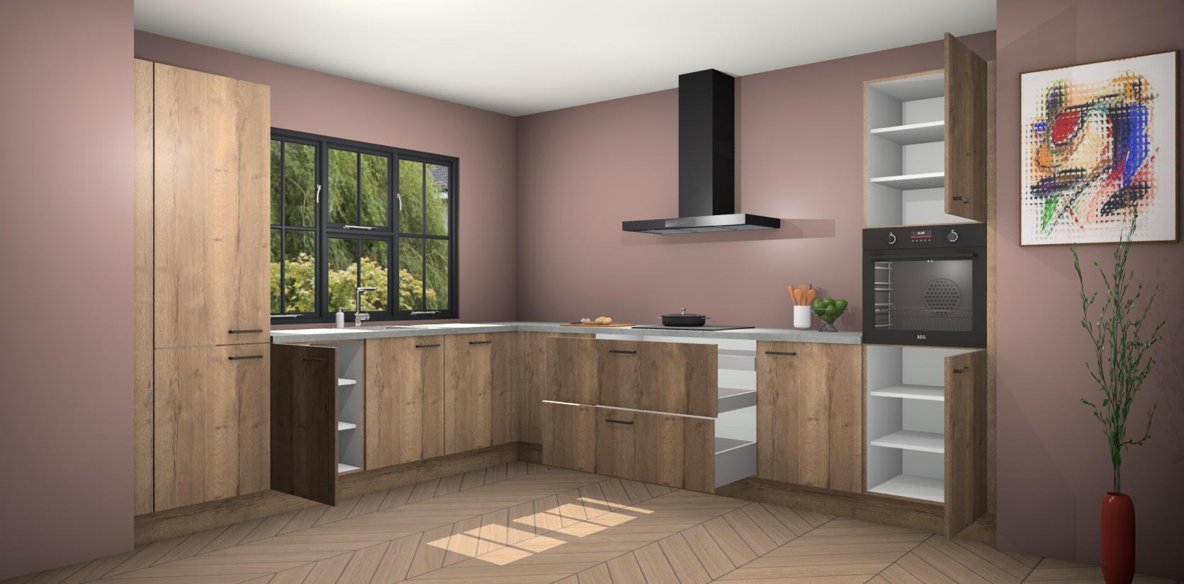 In deze box zijn alle kleuren verzameld van de deuren en werkbladen. Vraag de gratis kleurenbox aan en kijk thuis rustig verder!