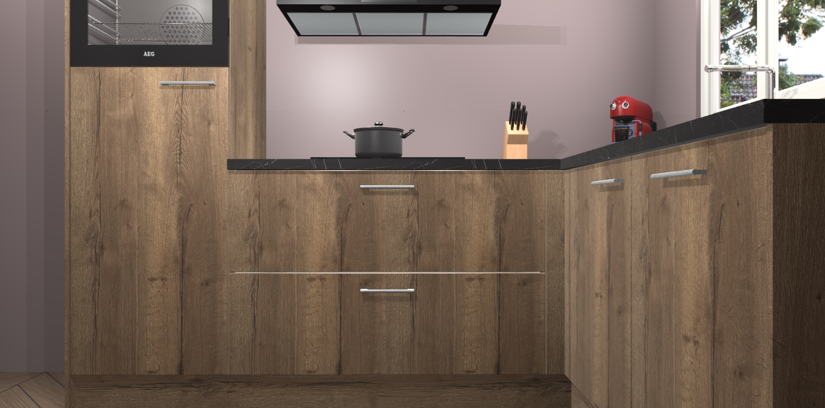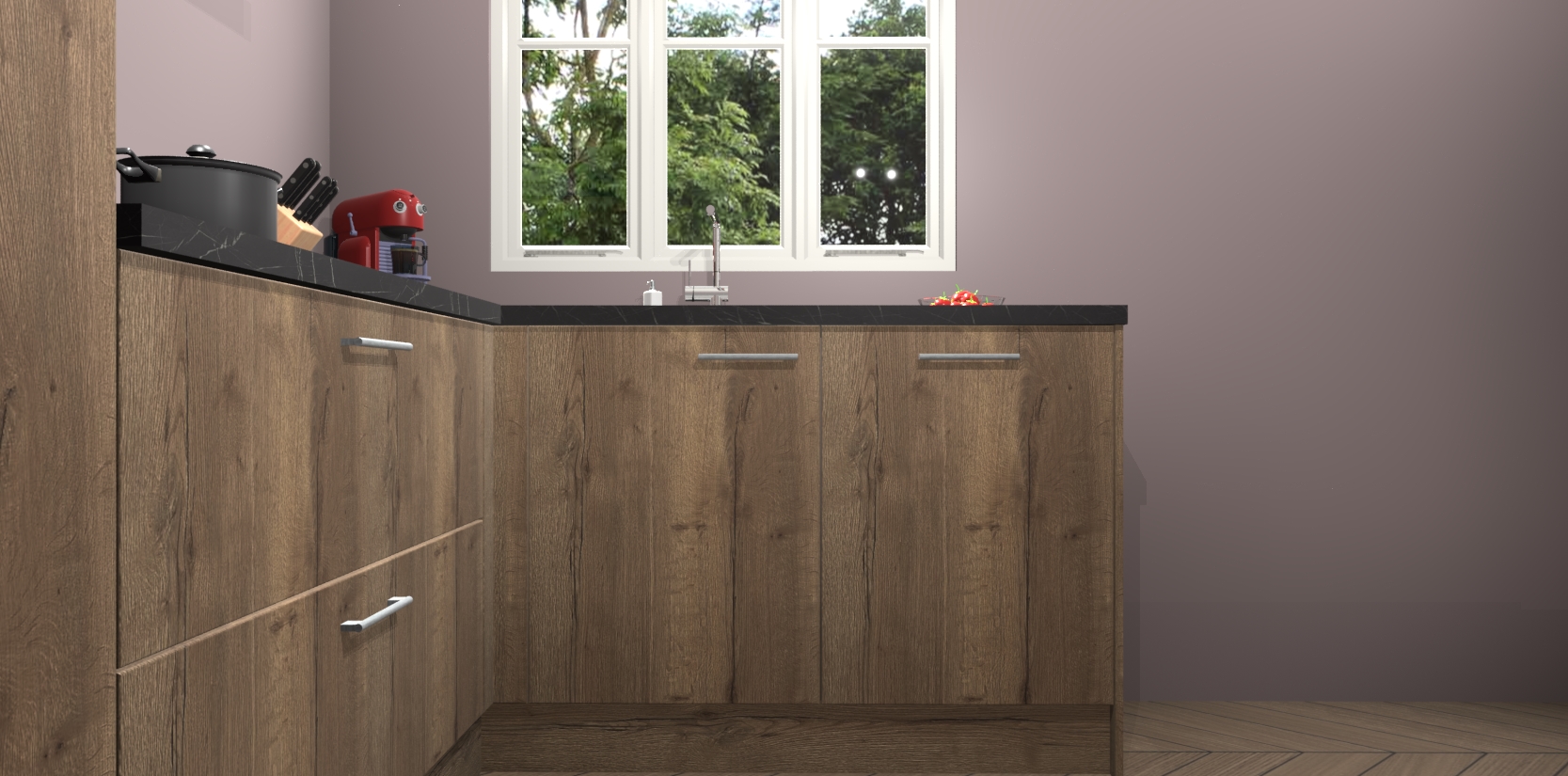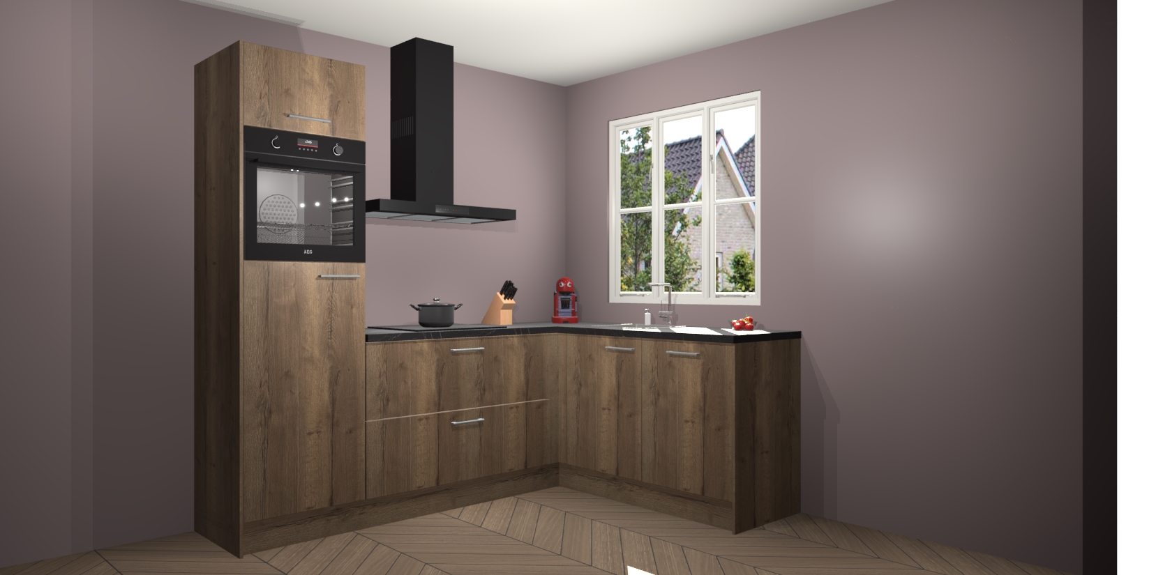 Dit model biedt u voldoende opbergruimte en vijf ingebouwde apparaten: een oven, inductiekookplaat, afzuigkap, vaatwasser en koelkast. Deze apparaten kunnen gemakkelijk worden geüpgrade naar AEG nadat u besteld heeft. De verschillende laden en kastjes bevatten softclose-deuren waardoor ze gezellig dichtvallen met een geruststellend helemaal geruisloos geluid. En dat is nog niet alles! We garanderen ook dat de prijs altijd laag blijft - dus haal nu uw Chocolade Eiken keuken Victoria terwijl het kan.