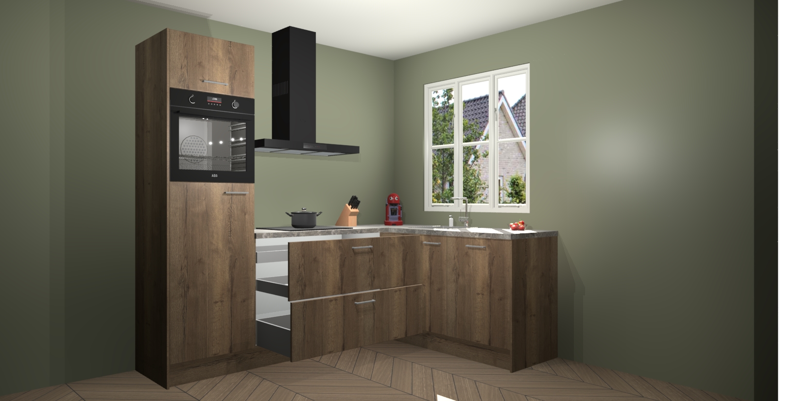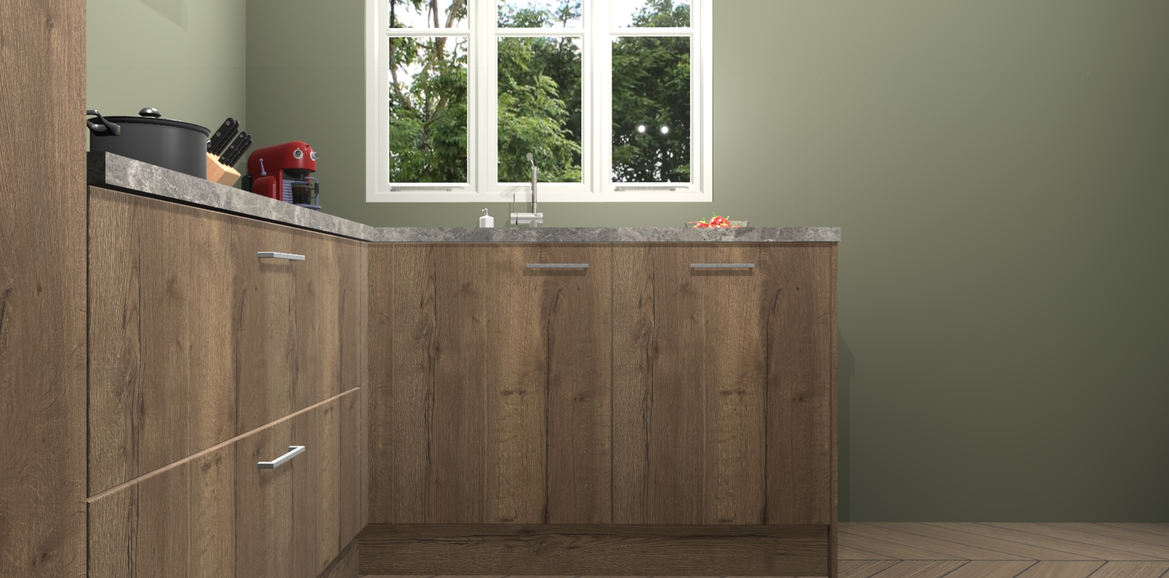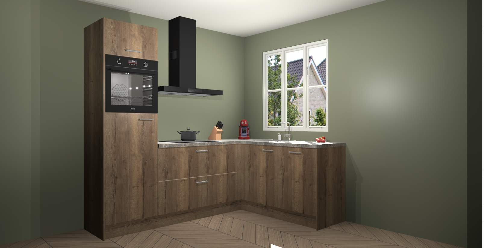 Dit model biedt u voldoende opbergruimte en vijf ingebouwde apparaten: een oven, inductiekookplaat, afzuigkap, vaatwasser en koelkast. Deze apparaten kunnen gemakkelijk worden geüpgrade naar AEG nadat u besteld heeft. De verschillende laden en kastjes bevatten softclose-deuren waardoor ze gezellig dichtvallen met een geruststellend helemaal geruisloos geluid. En dat is nog niet alles! We garanderen ook dat de prijs altijd laag blijft - dus haal nu uw Chocolade Eiken keuken Victoria terwijl het kan.