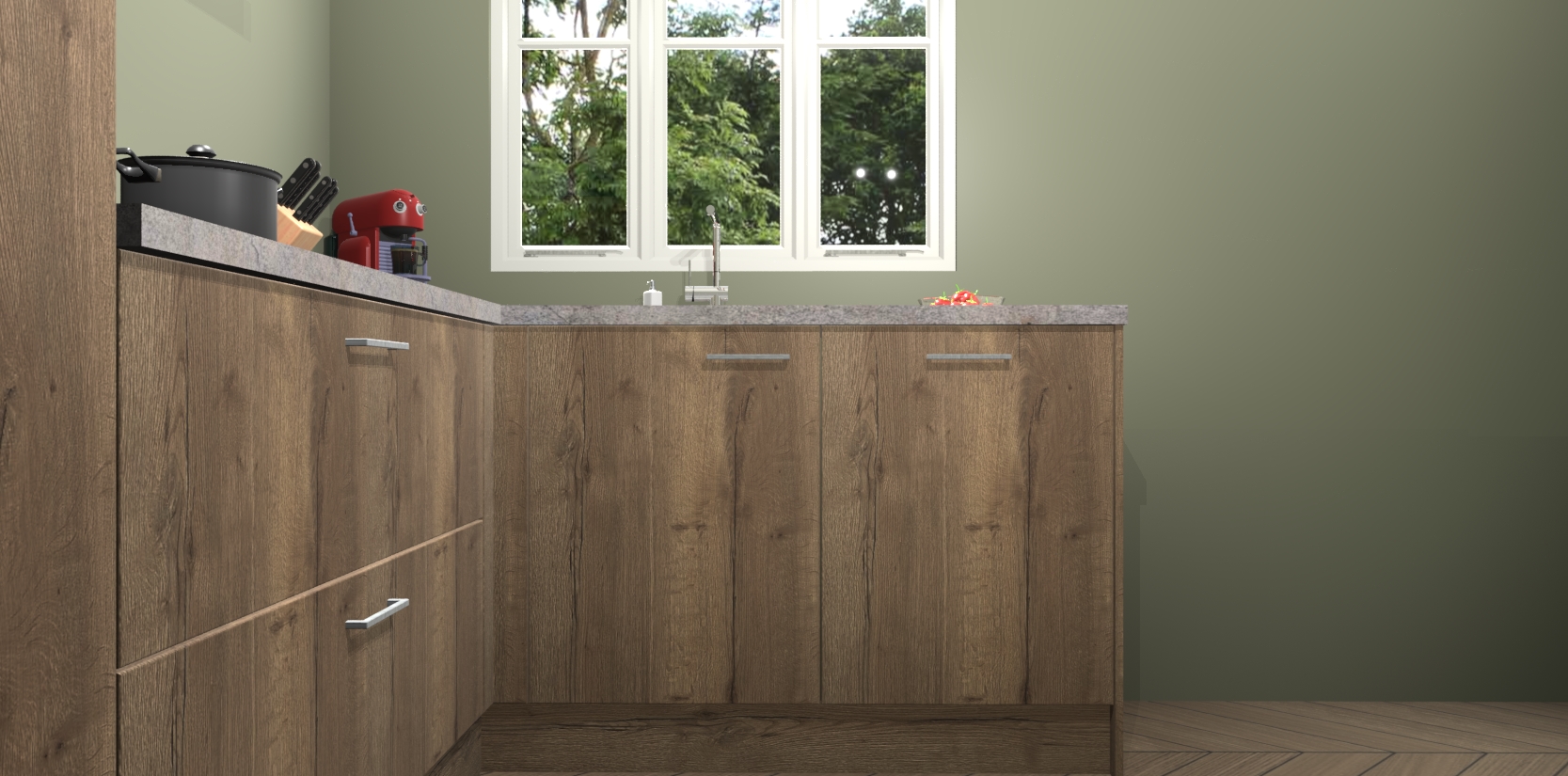 Dit model biedt u voldoende opbergruimte en vijf ingebouwde apparaten: een oven, inductiekookplaat, afzuigkap, vaatwasser en koelkast. Deze apparaten kunnen gemakkelijk worden geüpgrade naar AEG nadat u besteld heeft. De verschillende laden en kastjes bevatten softclose-deuren waardoor ze gezellig dichtvallen met een geruststellend helemaal geruisloos geluid. En dat is nog niet alles! We garanderen ook dat de prijs altijd laag blijft - dus haal nu uw Chocolade Eiken keuken Victoria terwijl het kan.