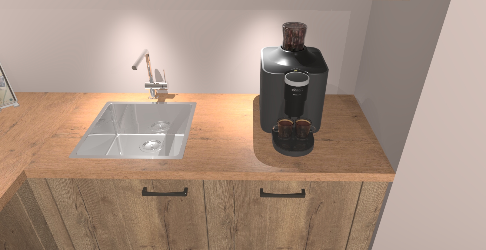 - De spoelbak is nog niet in gevreesd. Dit dient tijdens het werk gedaan te worden