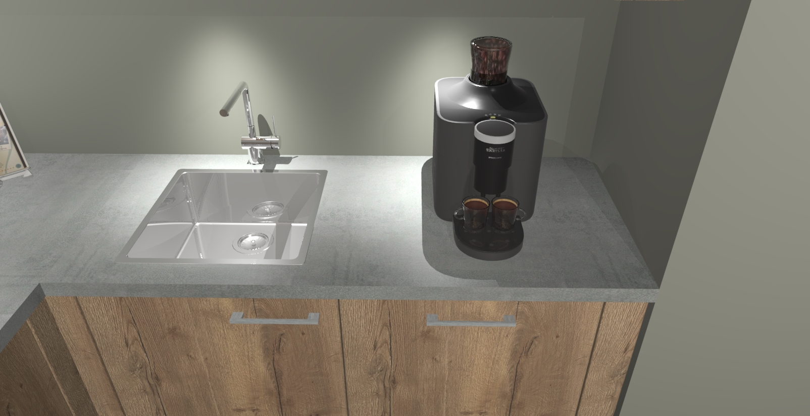 - De spoelbak is nog niet in gevreesd. Dit dient tijdens het werk gedaan te worden