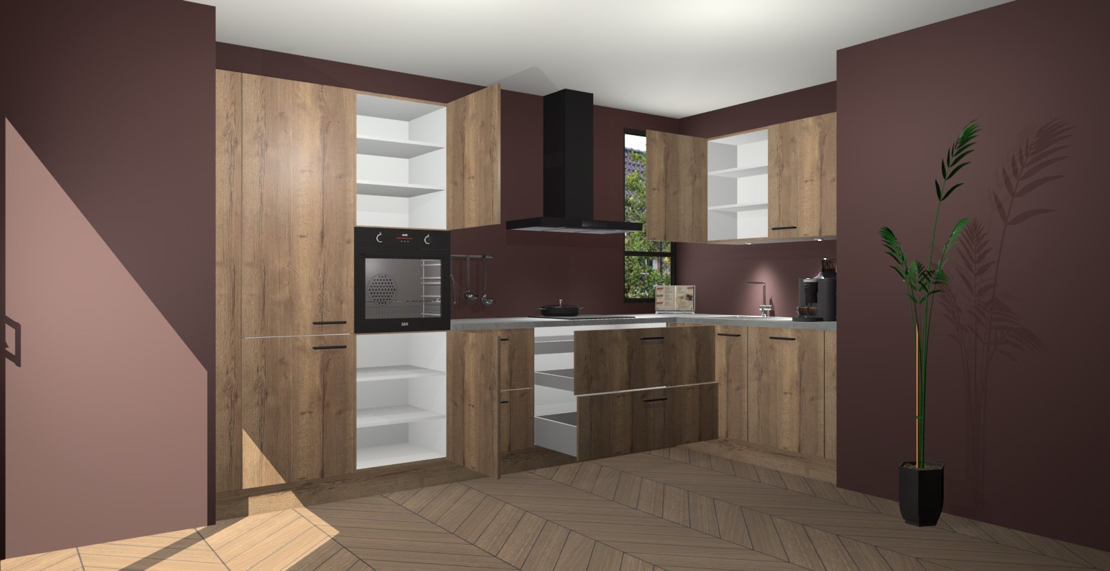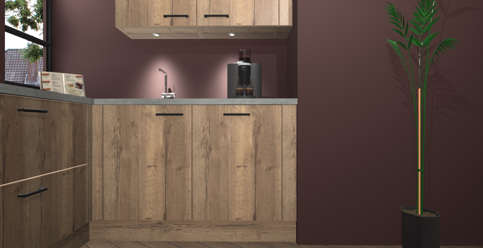 Welkom in uw nieuwe moderne keuken! Laat ons u voorstellen aan de Chocolade Eiken keuken Vlaanderen . Deze prachtige hoekkeuken straalt exclusiviteit en luxe uit als geen ander. Het strakke design, de tijdloze kleuren en het model maken van deze keuken een moderne klassieker. En met voldoende opbergruimte heeft deze keuken echt voor ieder wat wils.