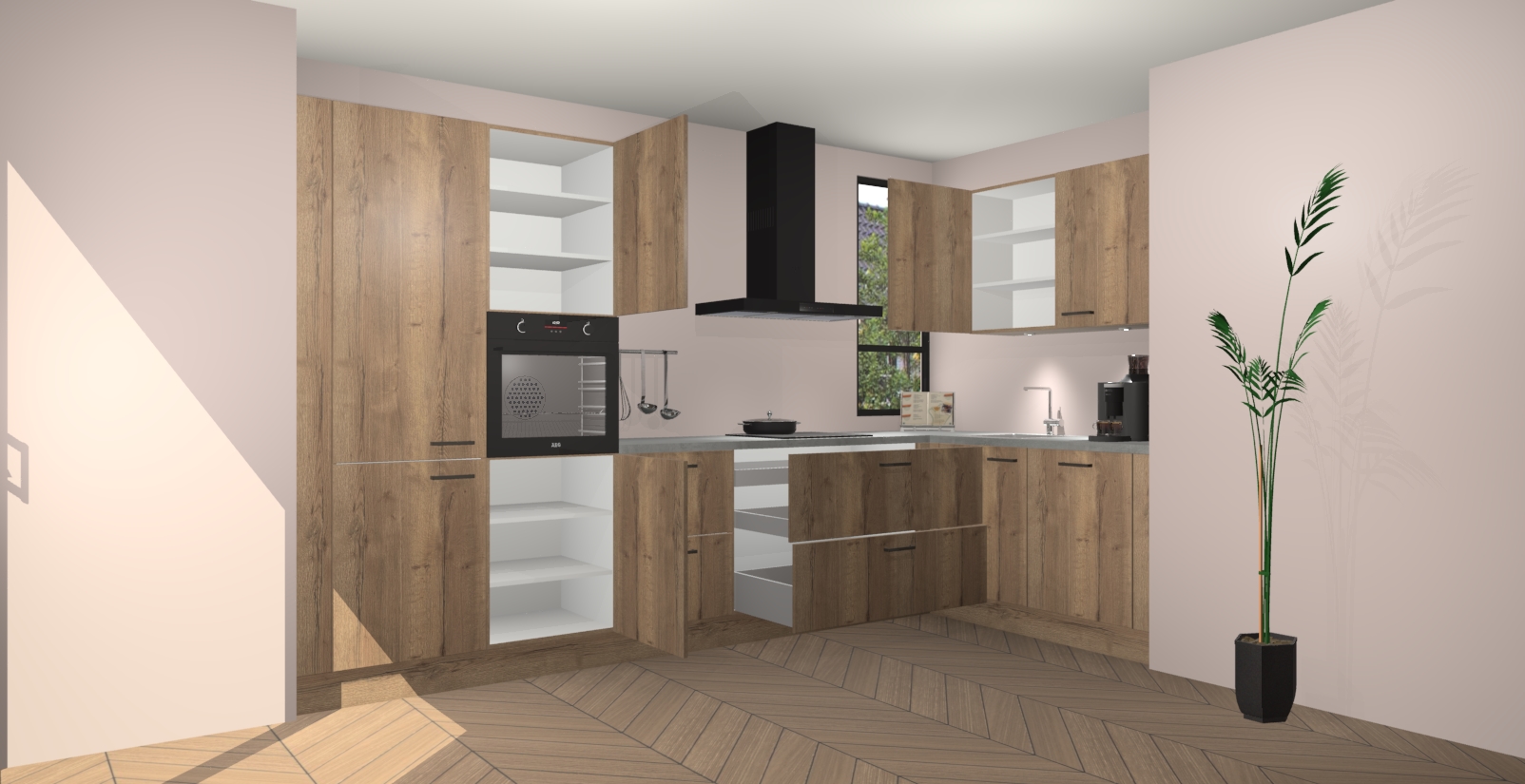 Welkom in uw nieuwe moderne keuken! Laat ons u voorstellen aan de Chocolade Eiken keuken Vlaanderen . Deze prachtige hoekkeuken straalt exclusiviteit en luxe uit als geen ander. Het strakke design, de tijdloze kleuren en het model maken van deze keuken een moderne klassieker. En met voldoende opbergruimte heeft deze keuken echt voor ieder wat wils.