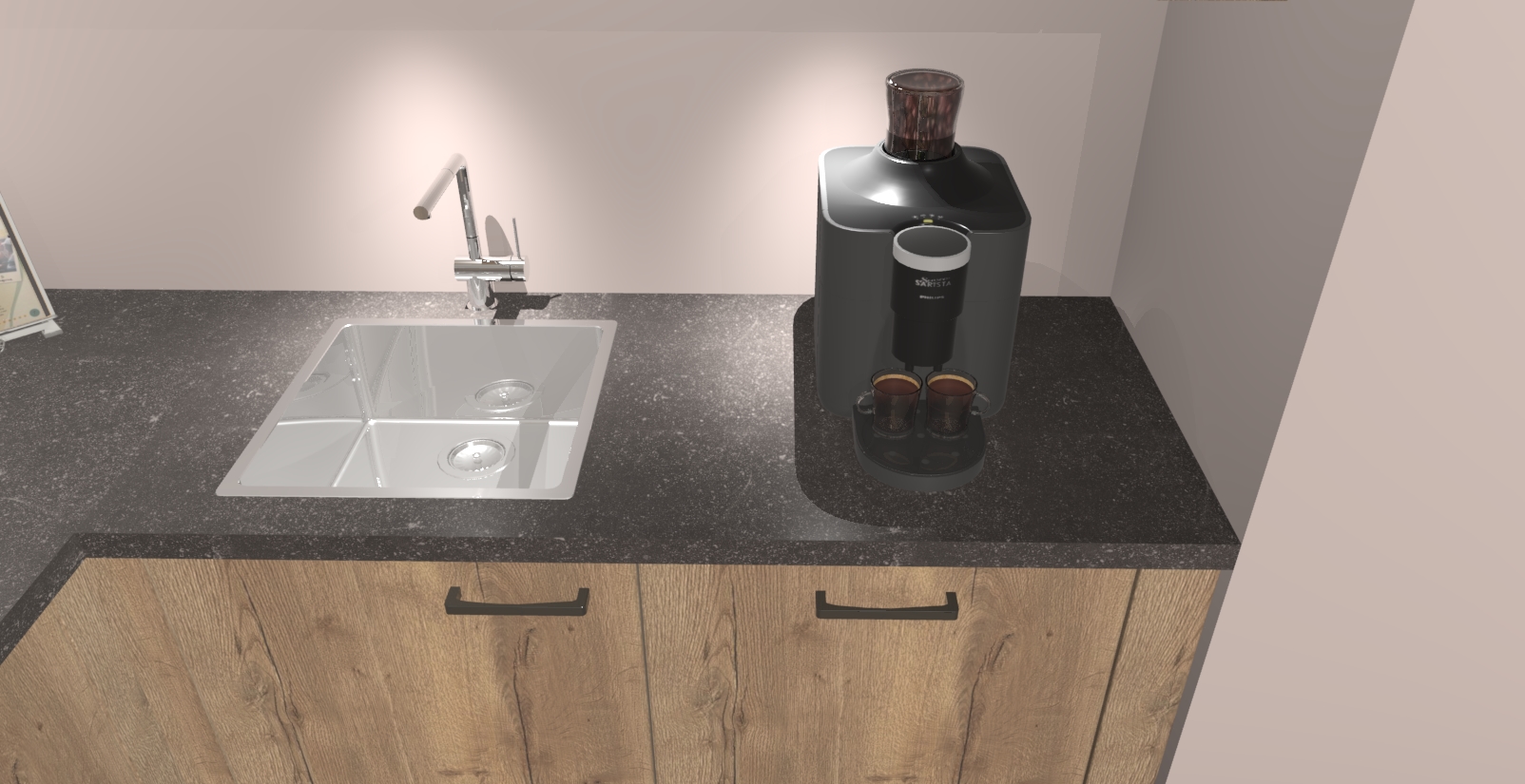 - De spoelbak is nog niet in gevreesd. Dit dient tijdens het werk gedaan te worden