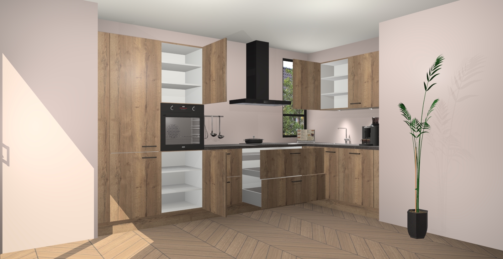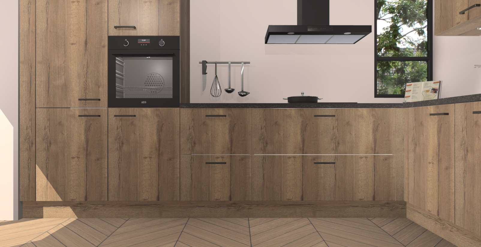 Welkom in uw nieuwe moderne keuken! Laat ons u voorstellen aan de Chocolade Eiken keuken Vlaanderen . Deze prachtige hoekkeuken straalt exclusiviteit en luxe uit als geen ander. Het strakke design, de tijdloze kleuren en het model maken van deze keuken een moderne klassieker. En met voldoende opbergruimte heeft deze keuken echt voor ieder wat wils.