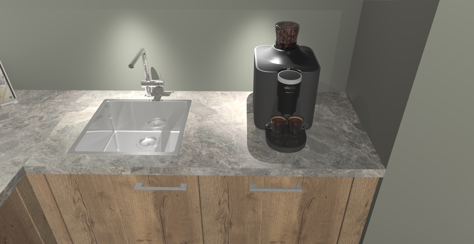 - De spoelbak is nog niet in gevreesd. Dit dient tijdens het werk gedaan te worden