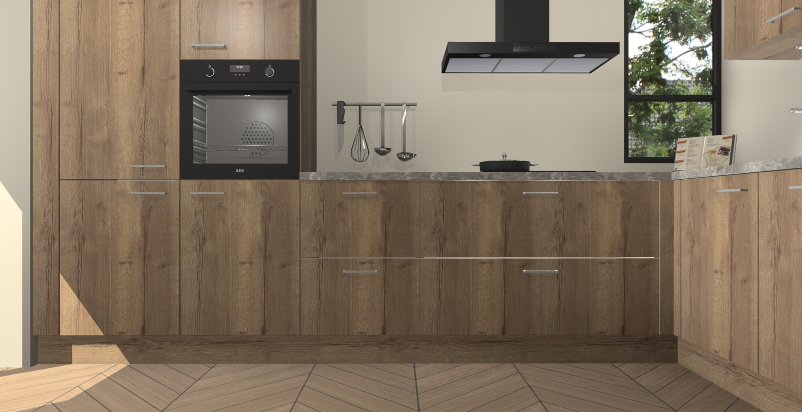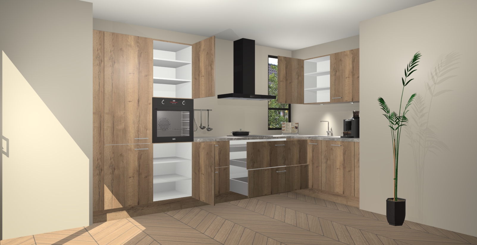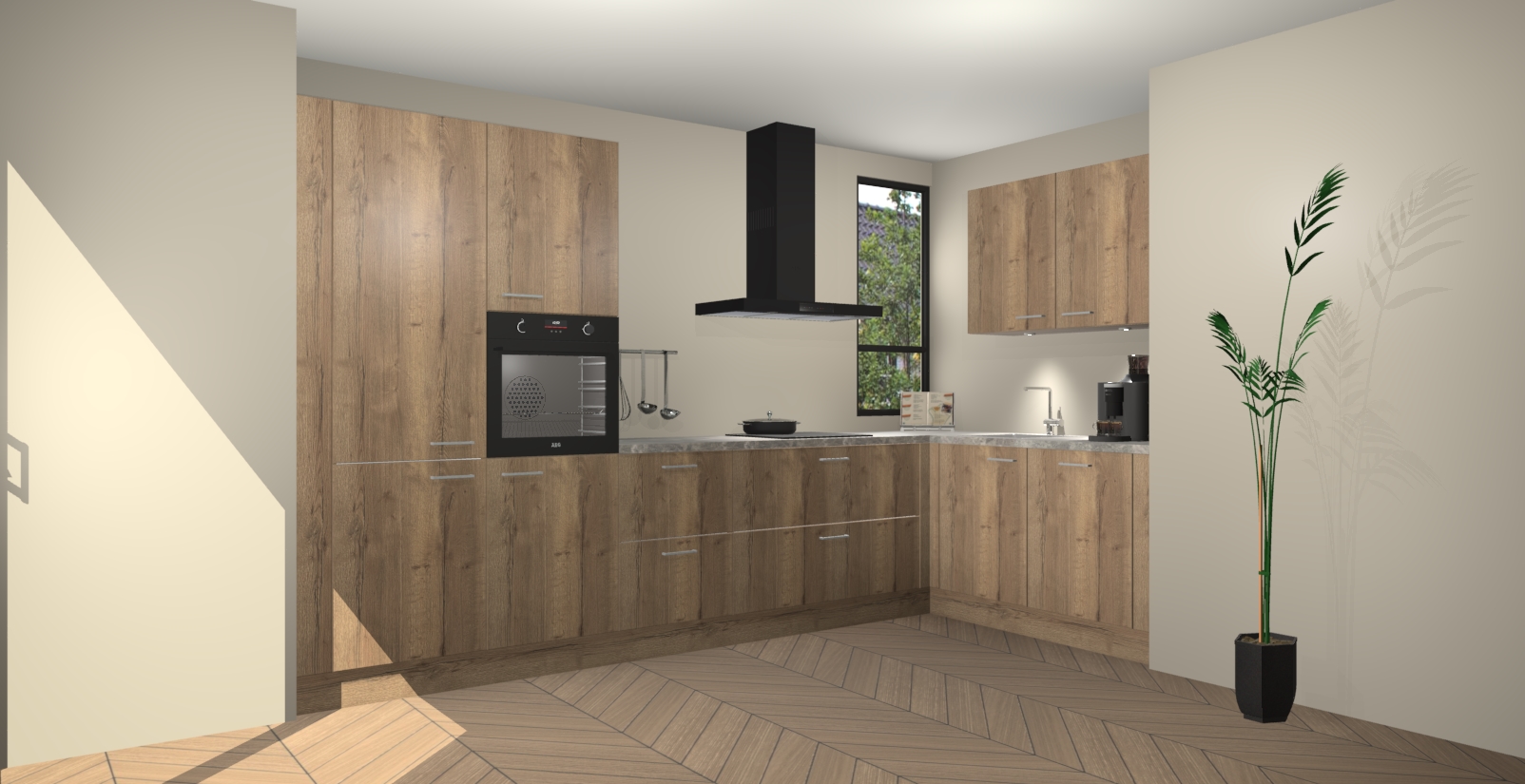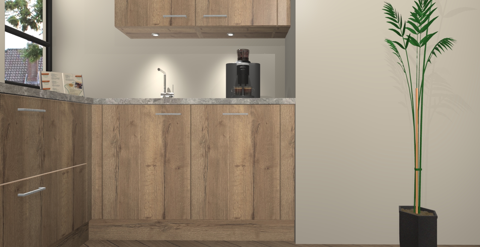 Welkom in uw nieuwe moderne keuken! Laat ons u voorstellen aan de Chocolade Eiken keuken Vlaanderen . Deze prachtige hoekkeuken straalt exclusiviteit en luxe uit als geen ander. Het strakke design, de tijdloze kleuren en het model maken van deze keuken een moderne klassieker. En met voldoende opbergruimte heeft deze keuken echt voor ieder wat wils.