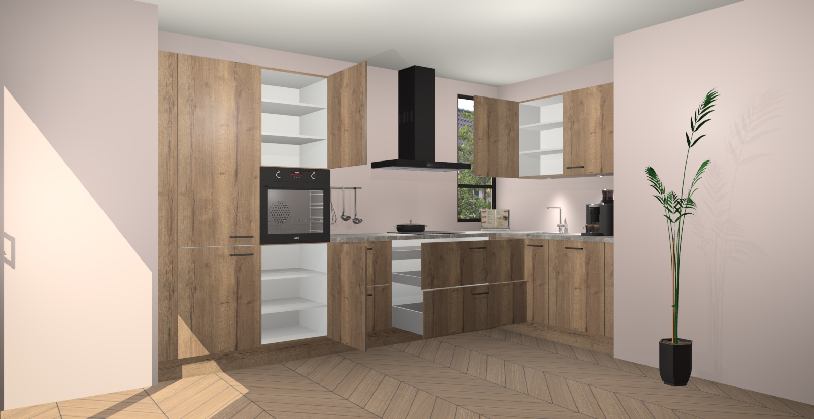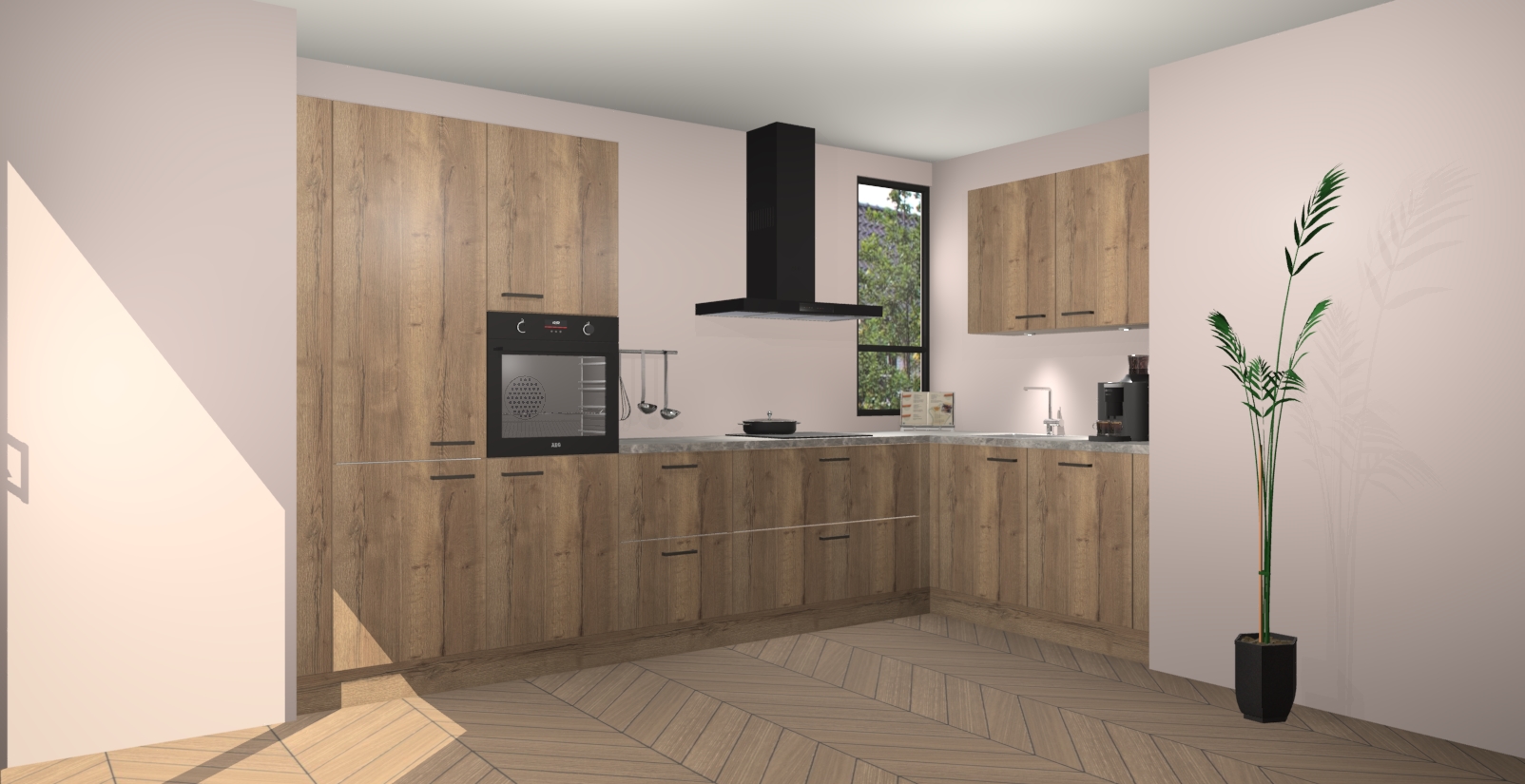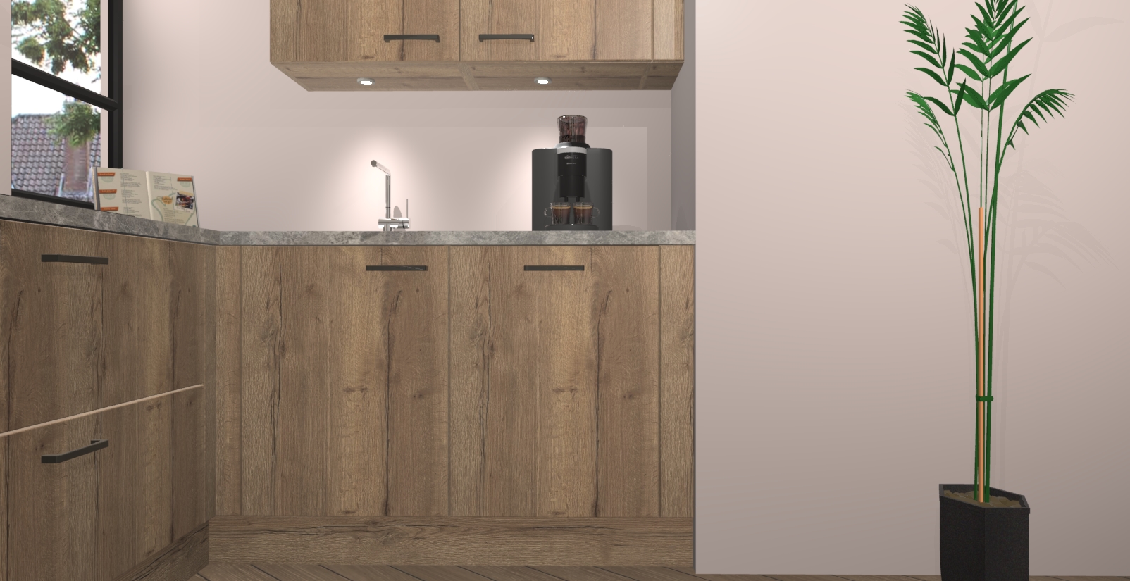 Welkom in uw nieuwe moderne keuken! Laat ons u voorstellen aan de Chocolade Eiken keuken Vlaanderen . Deze prachtige hoekkeuken straalt exclusiviteit en luxe uit als geen ander. Het strakke design, de tijdloze kleuren en het model maken van deze keuken een moderne klassieker. En met voldoende opbergruimte heeft deze keuken echt voor ieder wat wils.
