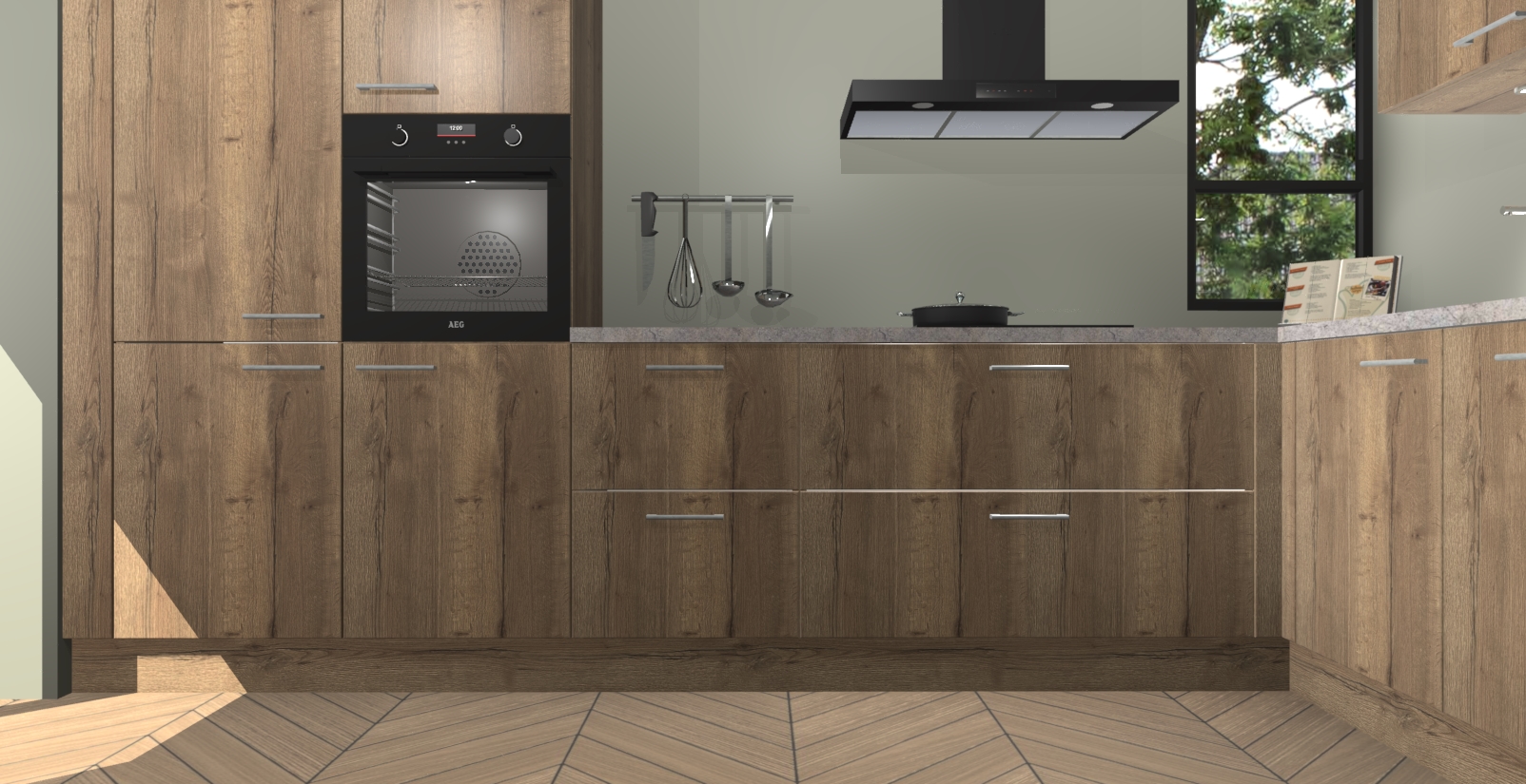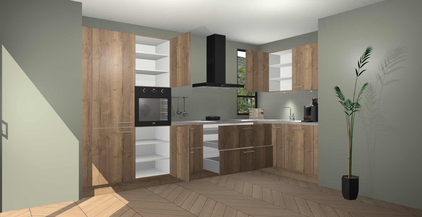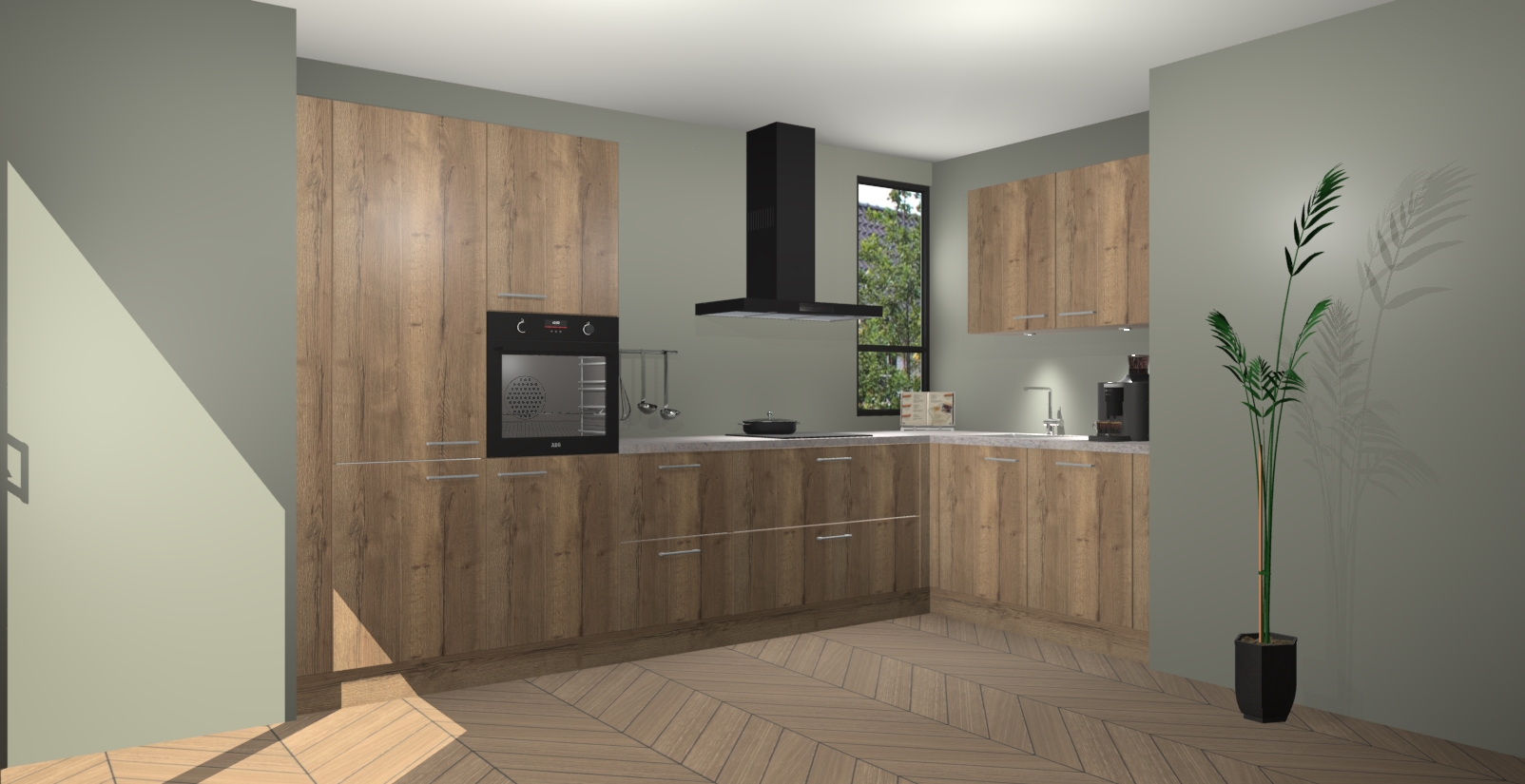 Welkom in uw nieuwe moderne keuken! Laat ons u voorstellen aan de Chocolade Eiken keuken Vlaanderen . Deze prachtige hoekkeuken straalt exclusiviteit en luxe uit als geen ander. Het strakke design, de tijdloze kleuren en het model maken van deze keuken een moderne klassieker. En met voldoende opbergruimte heeft deze keuken echt voor ieder wat wils.