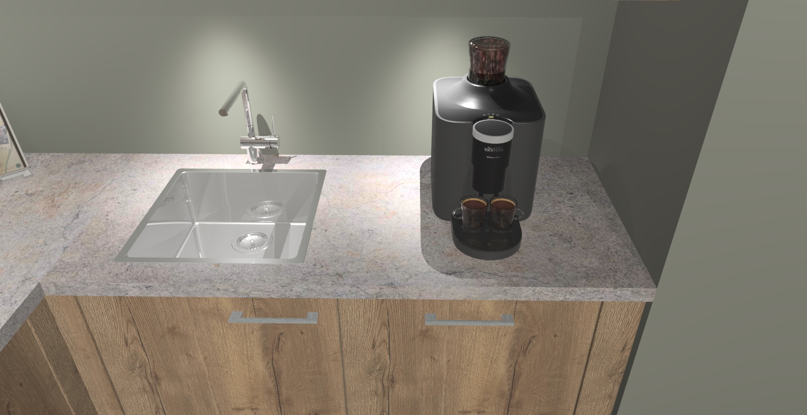 - De spoelbak is nog niet in gevreesd. Dit dient tijdens het werk gedaan te worden