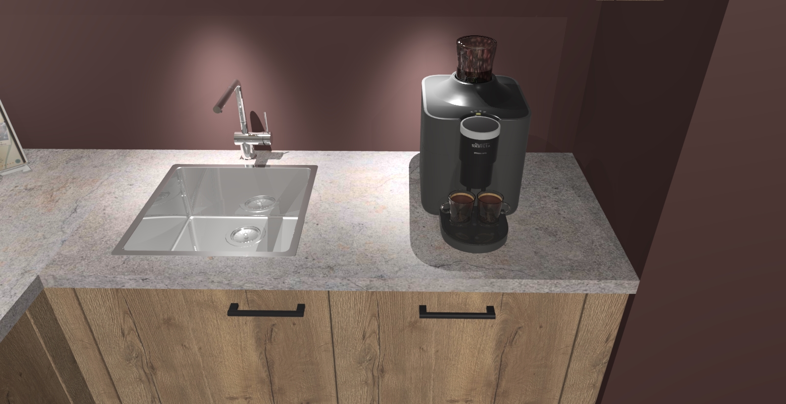 - De spoelbak is nog niet in gevreesd. Dit dient tijdens het werk gedaan te worden