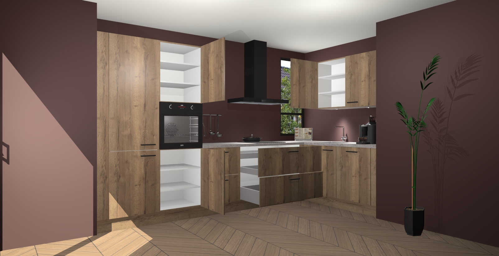 Welkom in uw nieuwe moderne keuken! Laat ons u voorstellen aan de Chocolade Eiken keuken Vlaanderen . Deze prachtige hoekkeuken straalt exclusiviteit en luxe uit als geen ander. Het strakke design, de tijdloze kleuren en het model maken van deze keuken een moderne klassieker. En met voldoende opbergruimte heeft deze keuken echt voor ieder wat wils.
