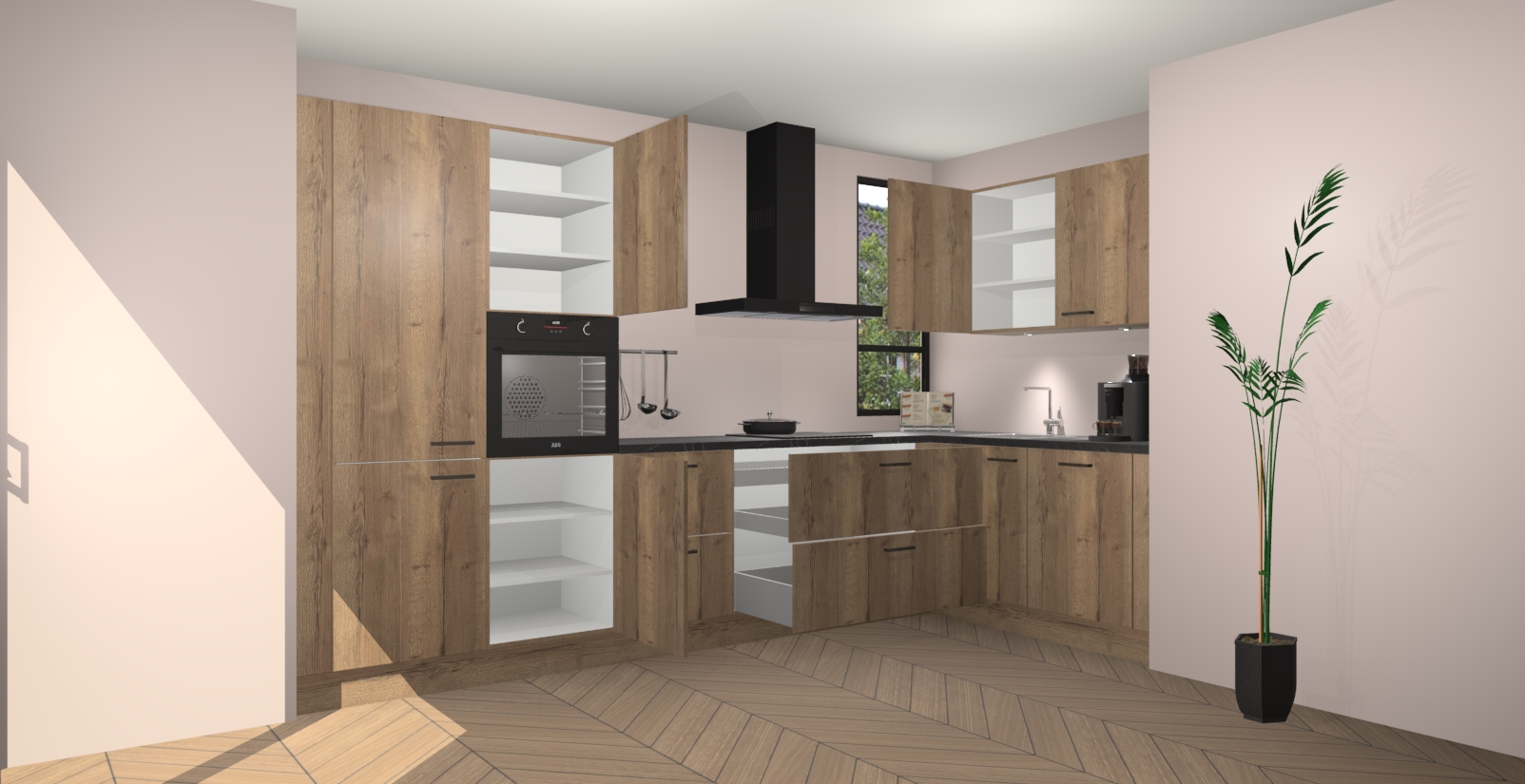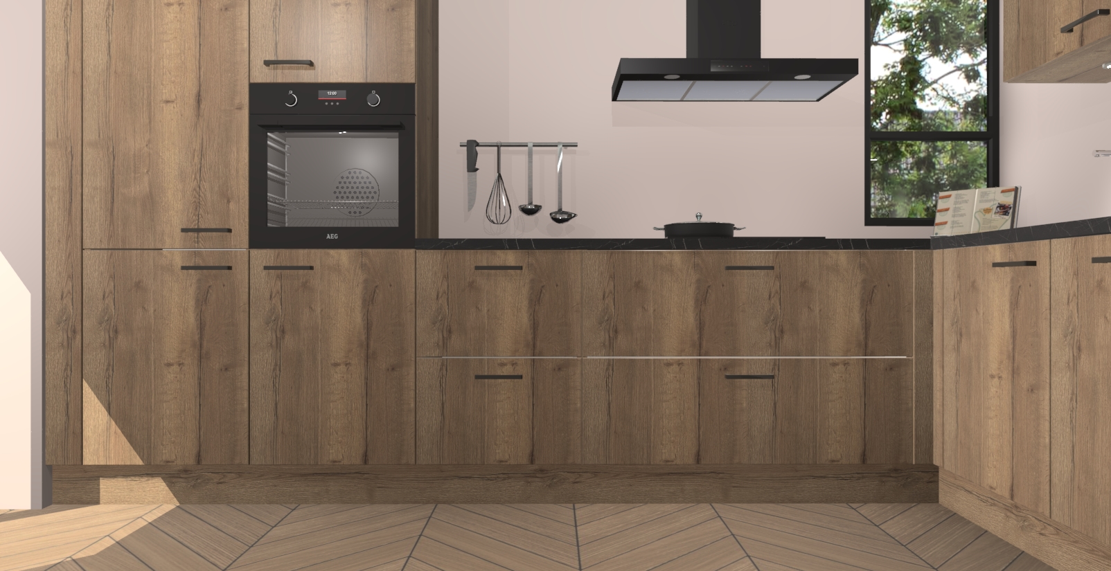 Welkom in uw nieuwe moderne keuken! Laat ons u voorstellen aan de Chocolade Eiken keuken Vlaanderen . Deze prachtige hoekkeuken straalt exclusiviteit en luxe uit als geen ander. Het strakke design, de tijdloze kleuren en het model maken van deze keuken een moderne klassieker. En met voldoende opbergruimte heeft deze keuken echt voor ieder wat wils.