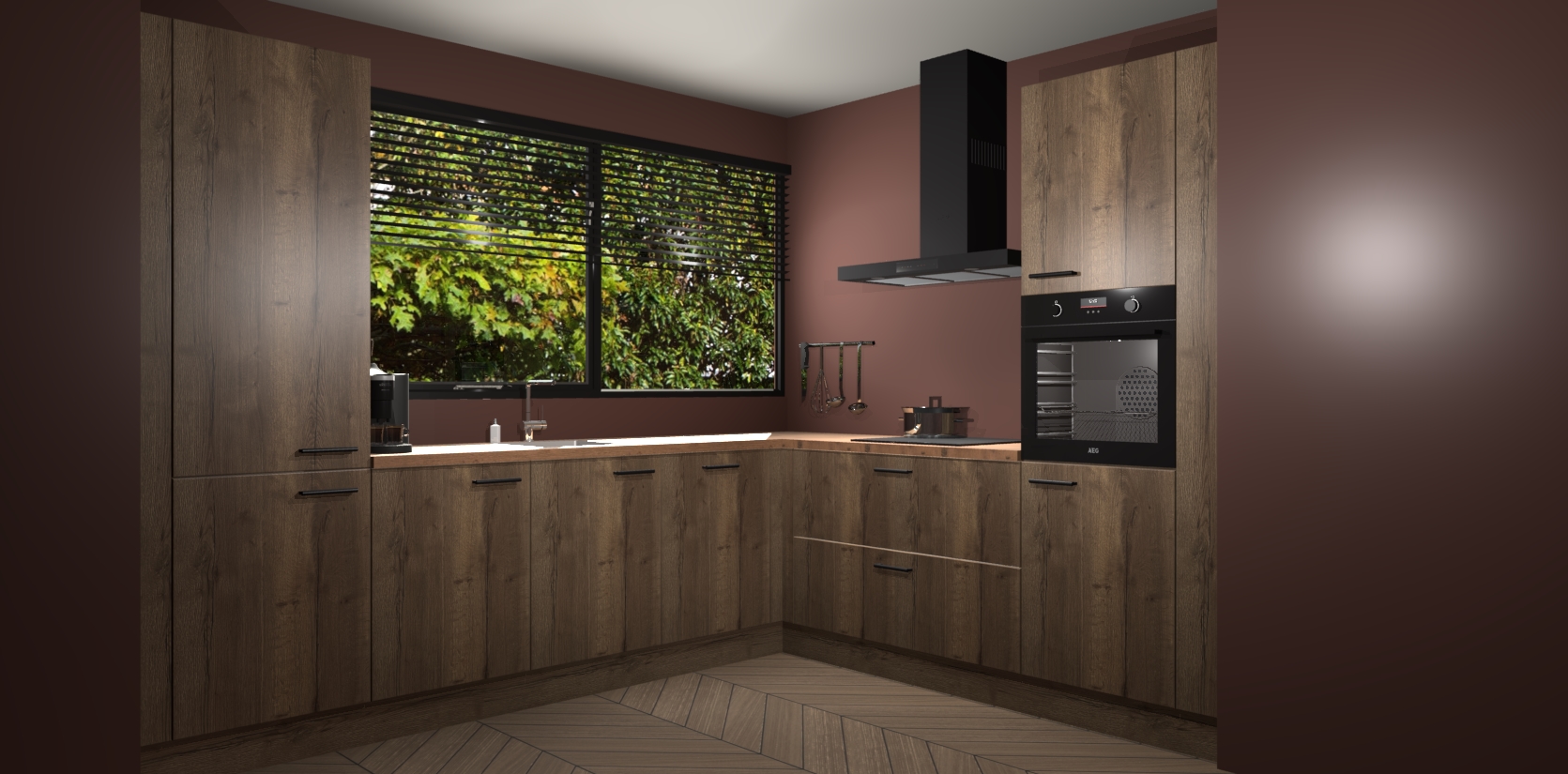 Wij presenteren de revolutie in keukens: de chocolade eiken keuken Vogar. Met modern design, een tijdloos uiterlijk en kasten die al voor gemonteerd worden geleverd, laat deze stijlvolle keuken uw kookervaring op een hele nieuwe manier transformeren.