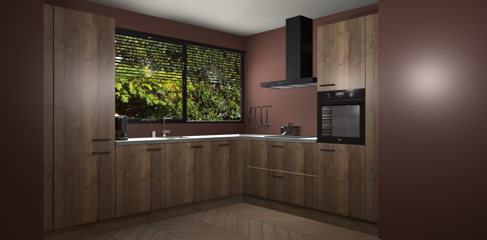 Wij presenteren de revolutie in keukens: de chocolade eiken keuken Vogar. Met modern design, een tijdloos uiterlijk en kasten die al voor gemonteerd worden geleverd, laat deze stijlvolle keuken uw kookervaring op een hele nieuwe manier transformeren.