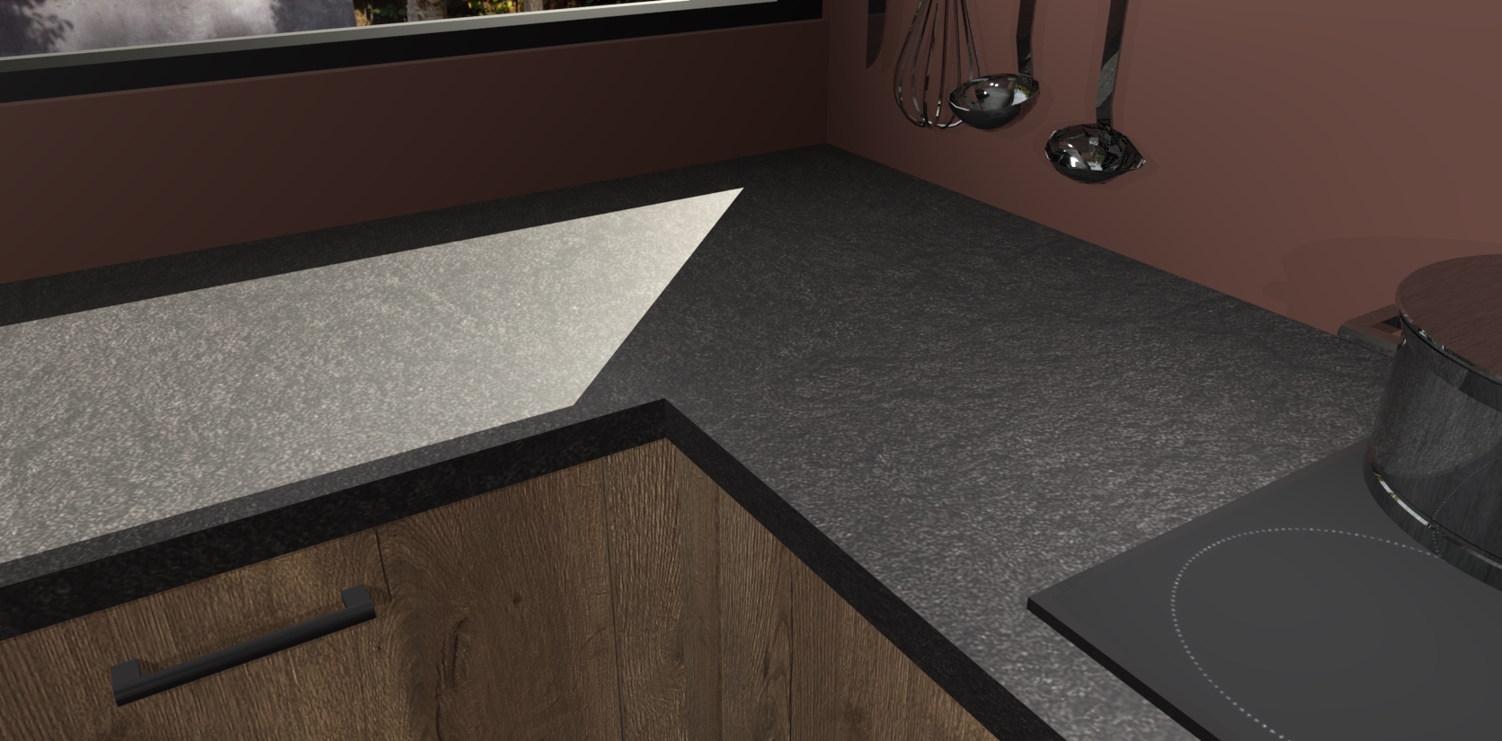 - Bij een hoekwerkblad zijn de hoeken in gevreesd en op maat gemaakt