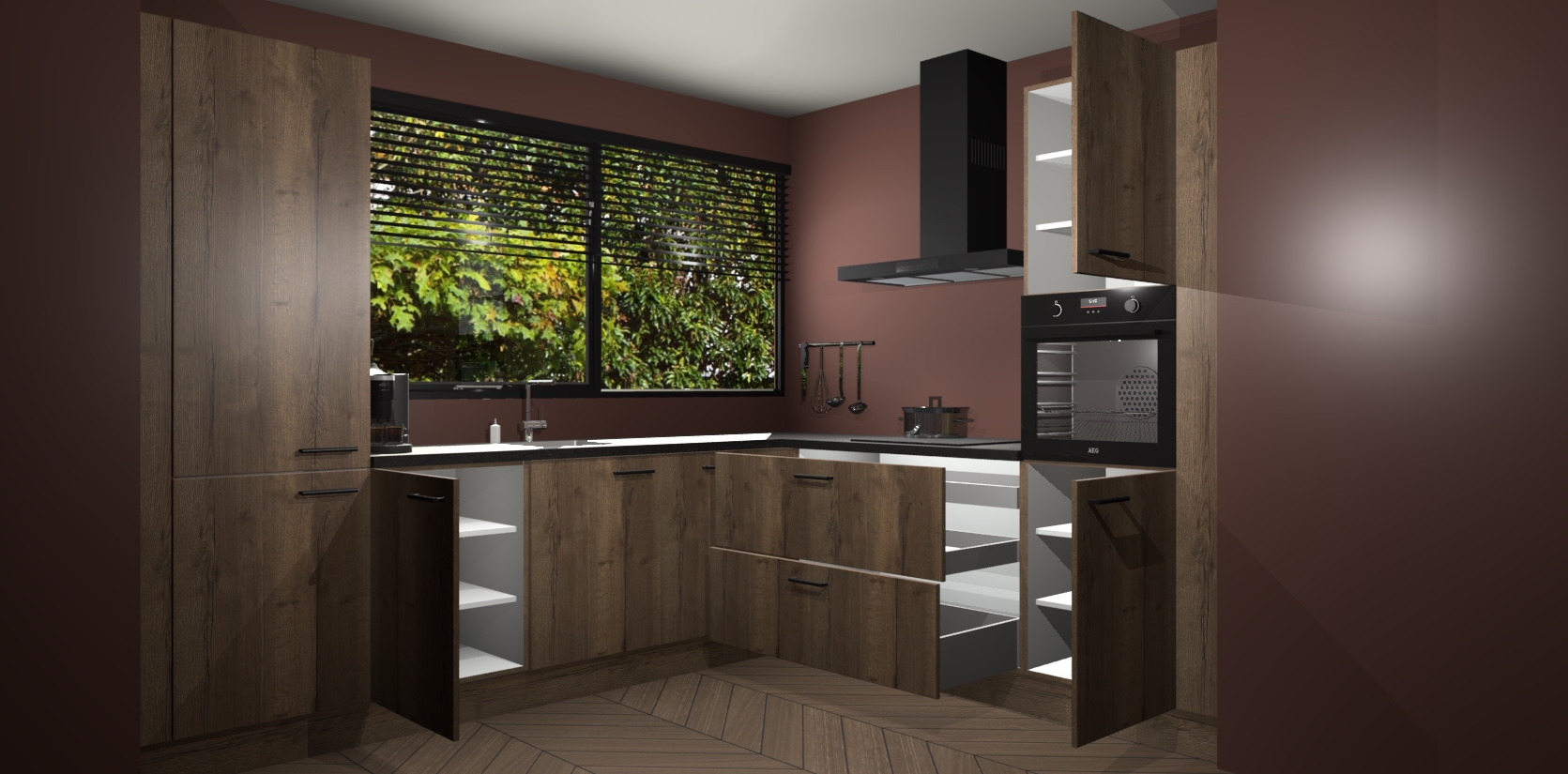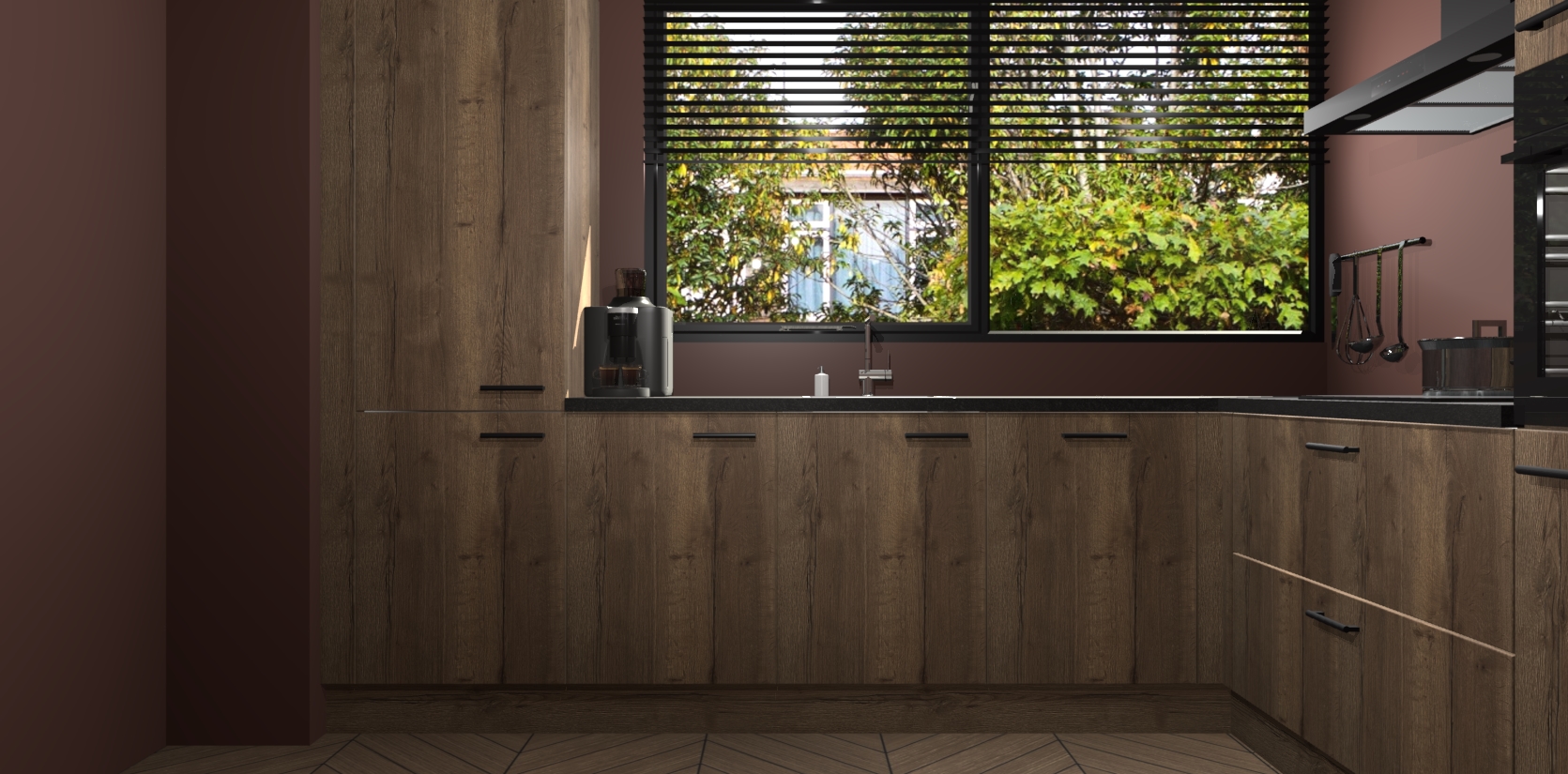 Wij presenteren de revolutie in keukens: de chocolade eiken keuken Vogar. Met modern design, een tijdloos uiterlijk en kasten die al voor gemonteerd worden geleverd, laat deze stijlvolle keuken uw kookervaring op een hele nieuwe manier transformeren.