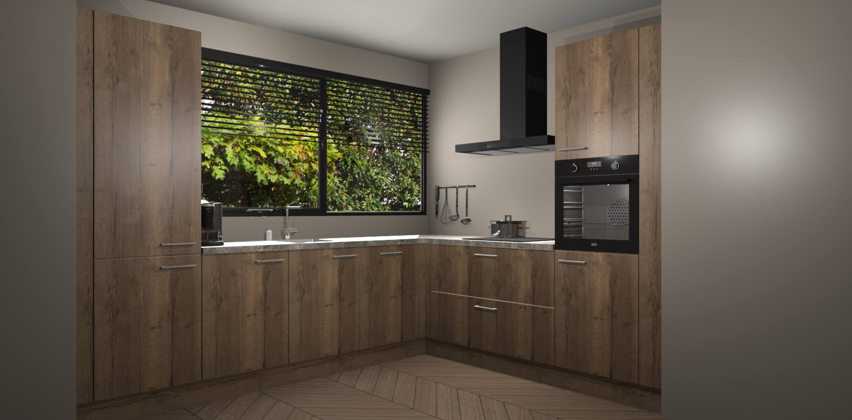 Wij presenteren de revolutie in keukens: de chocolade eiken keuken Vogar. Met modern design, een tijdloos uiterlijk en kasten die al voor gemonteerd worden geleverd, laat deze stijlvolle keuken uw kookervaring op een hele nieuwe manier transformeren.