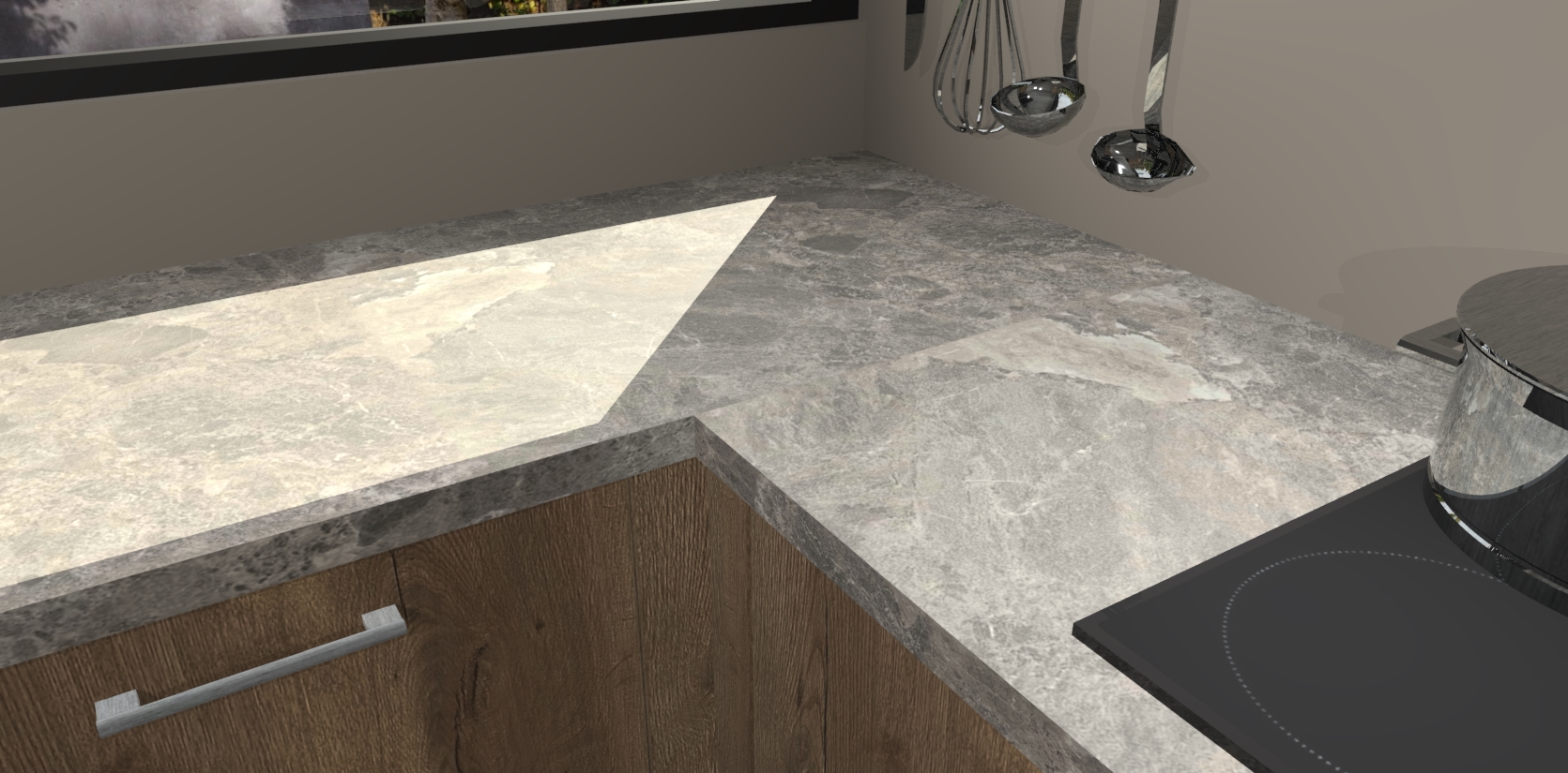 - Bij een hoekwerkblad zijn de hoeken in gevreesd en op maat gemaakt