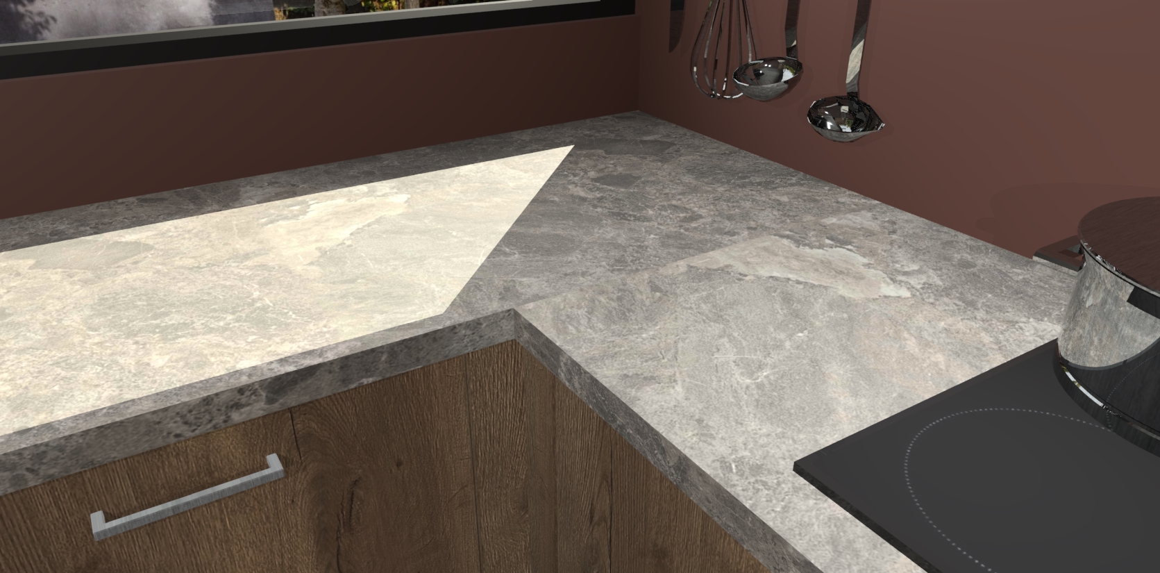 - Bij een hoekwerkblad zijn de hoeken in gevreesd en op maat gemaakt