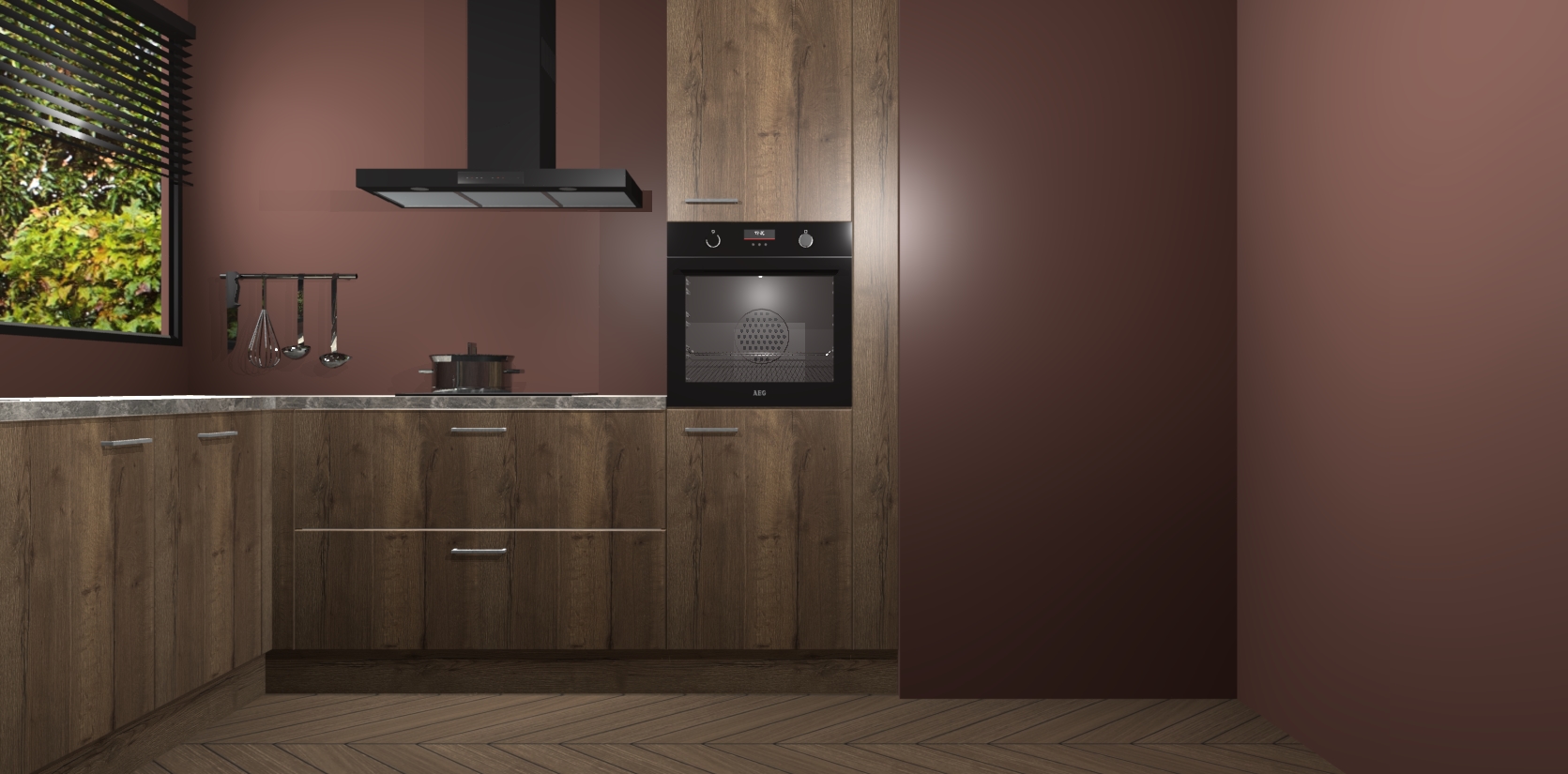 Met een modern, tijdloos design en ruime opslagruimte, zult u zich in no-time thuis voelen in uw nieuwe keuken. Uw leven wordt eenvoudiger met de soft-close deuren die voor het ultieme stille comfort zorgen - geen geluid dat u stoort terwijl u kookt. Ook is de keuken voorzien van 5 ingebouwde apparaten: een oven, inductie kookplaat, afzuigkap, vaatwasser en koelkast. Deze kunnen gemakkelijk na bestelling worden bijgewerkt naar AEG - waardoor uw luxe ervaring compleet is.