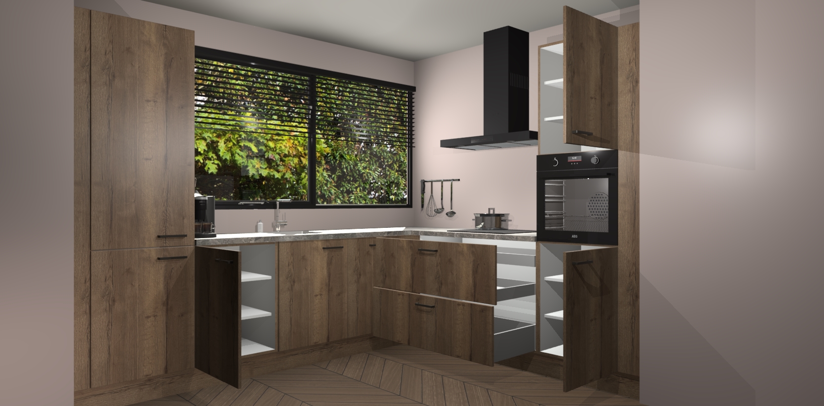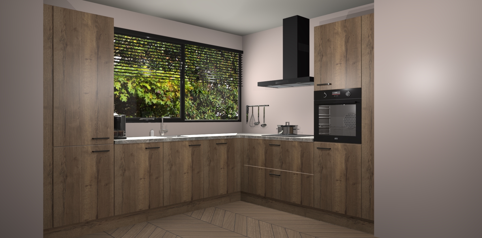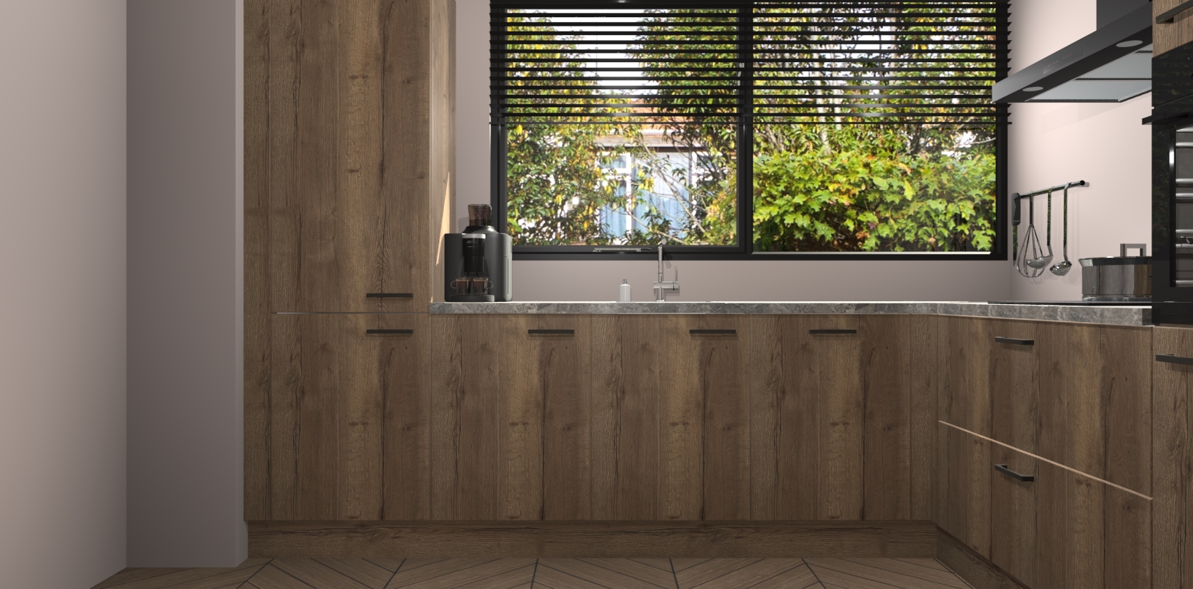 Wij presenteren de revolutie in keukens: de chocolade eiken keuken Vogar. Met modern design, een tijdloos uiterlijk en kasten die al voor gemonteerd worden geleverd, laat deze stijlvolle keuken uw kookervaring op een hele nieuwe manier transformeren.