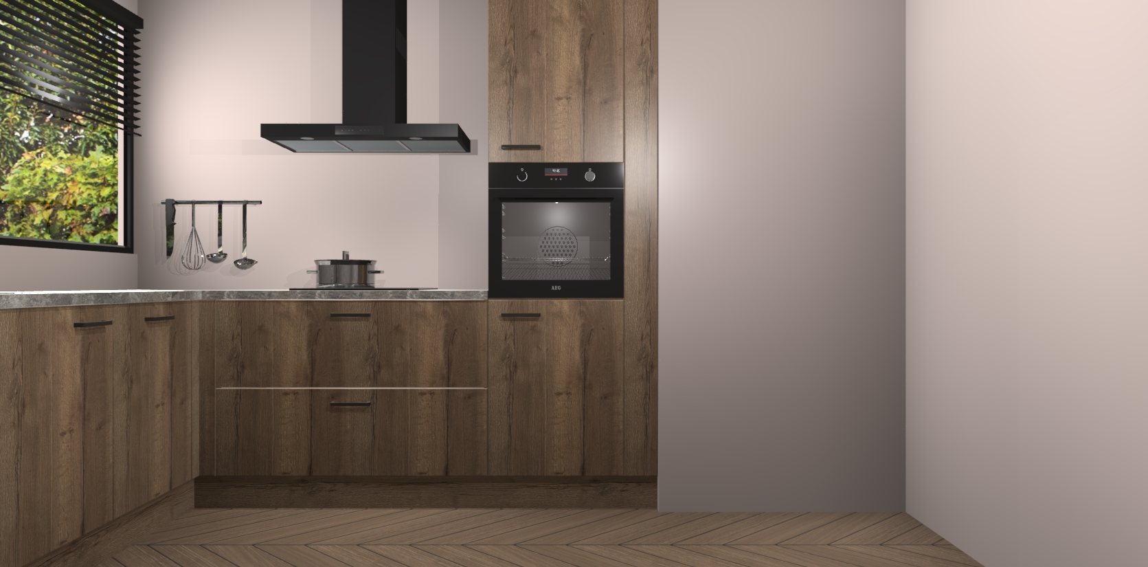 Met een modern, tijdloos design en ruime opslagruimte, zult u zich in no-time thuis voelen in uw nieuwe keuken. Uw leven wordt eenvoudiger met de soft-close deuren die voor het ultieme stille comfort zorgen - geen geluid dat u stoort terwijl u kookt. Ook is de keuken voorzien van 5 ingebouwde apparaten: een oven, inductie kookplaat, afzuigkap, vaatwasser en koelkast. Deze kunnen gemakkelijk na bestelling worden bijgewerkt naar AEG - waardoor uw luxe ervaring compleet is.