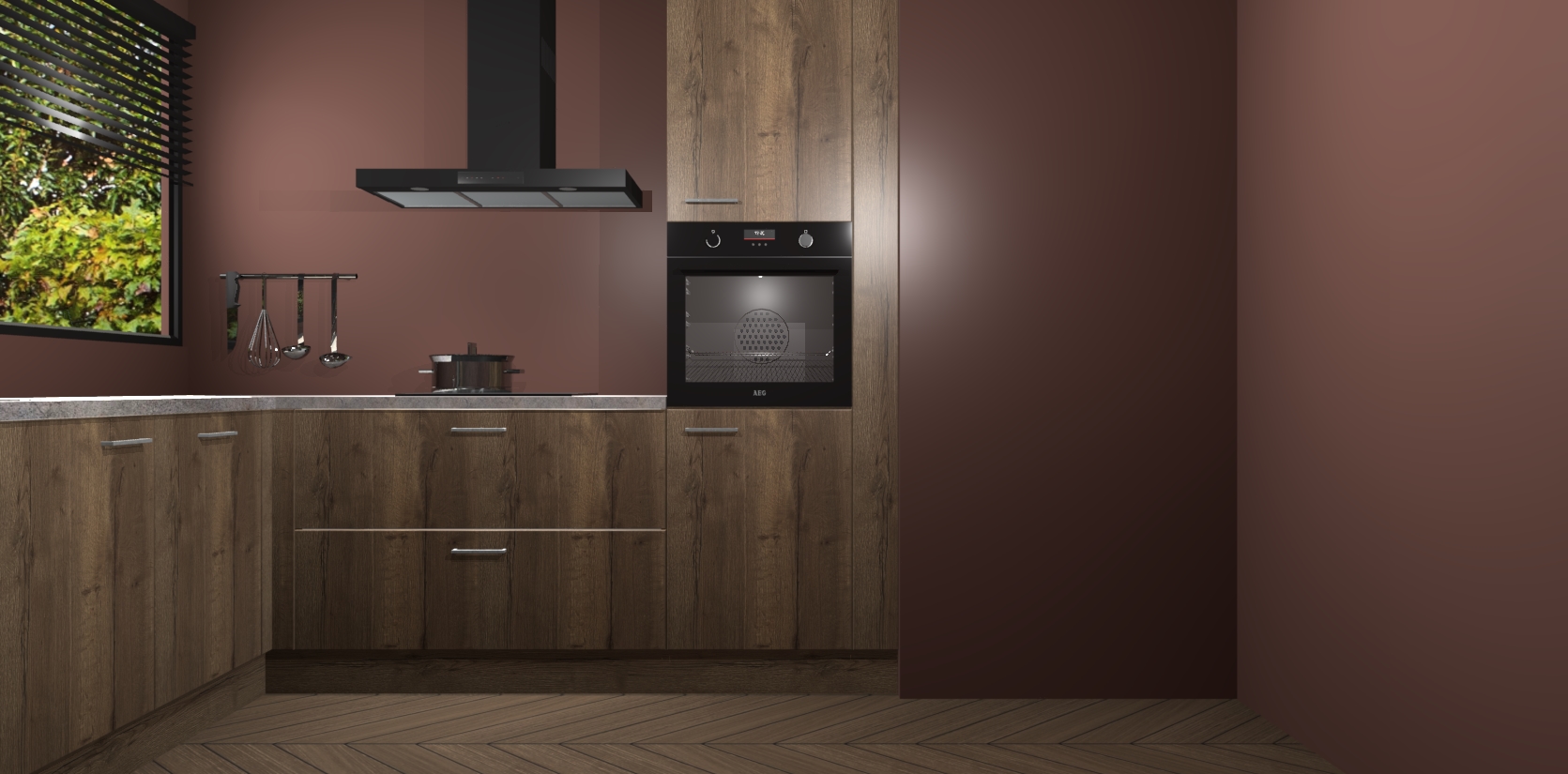 Met een modern, tijdloos design en ruime opslagruimte, zult u zich in no-time thuis voelen in uw nieuwe keuken. Uw leven wordt eenvoudiger met de soft-close deuren die voor het ultieme stille comfort zorgen - geen geluid dat u stoort terwijl u kookt. Ook is de keuken voorzien van 5 ingebouwde apparaten: een oven, inductie kookplaat, afzuigkap, vaatwasser en koelkast. Deze kunnen gemakkelijk na bestelling worden bijgewerkt naar AEG - waardoor uw luxe ervaring compleet is.