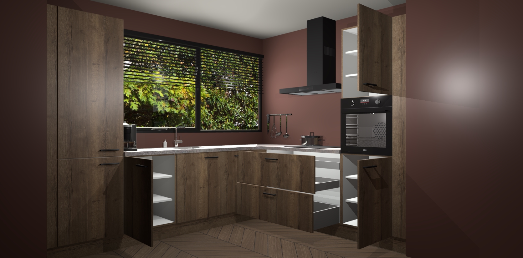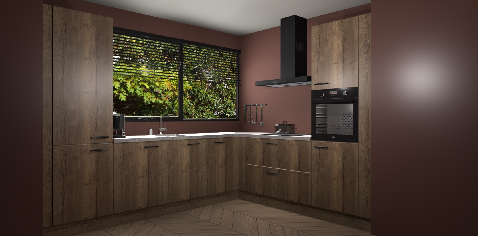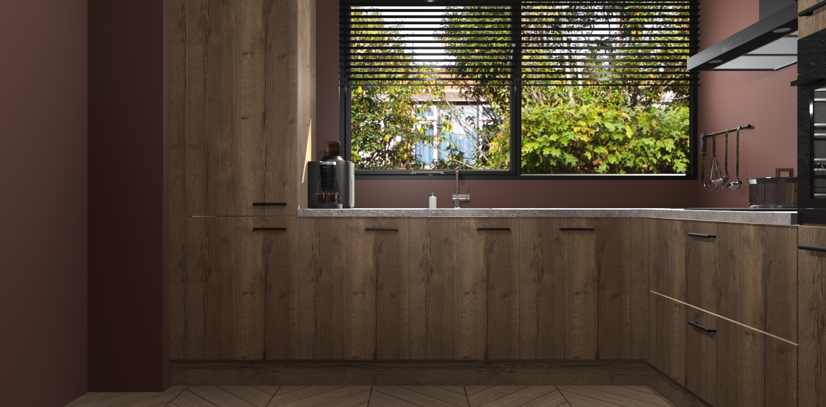 Wij presenteren de revolutie in keukens: de chocolade eiken keuken Vogar. Met modern design, een tijdloos uiterlijk en kasten die al voor gemonteerd worden geleverd, laat deze stijlvolle keuken uw kookervaring op een hele nieuwe manier transformeren.