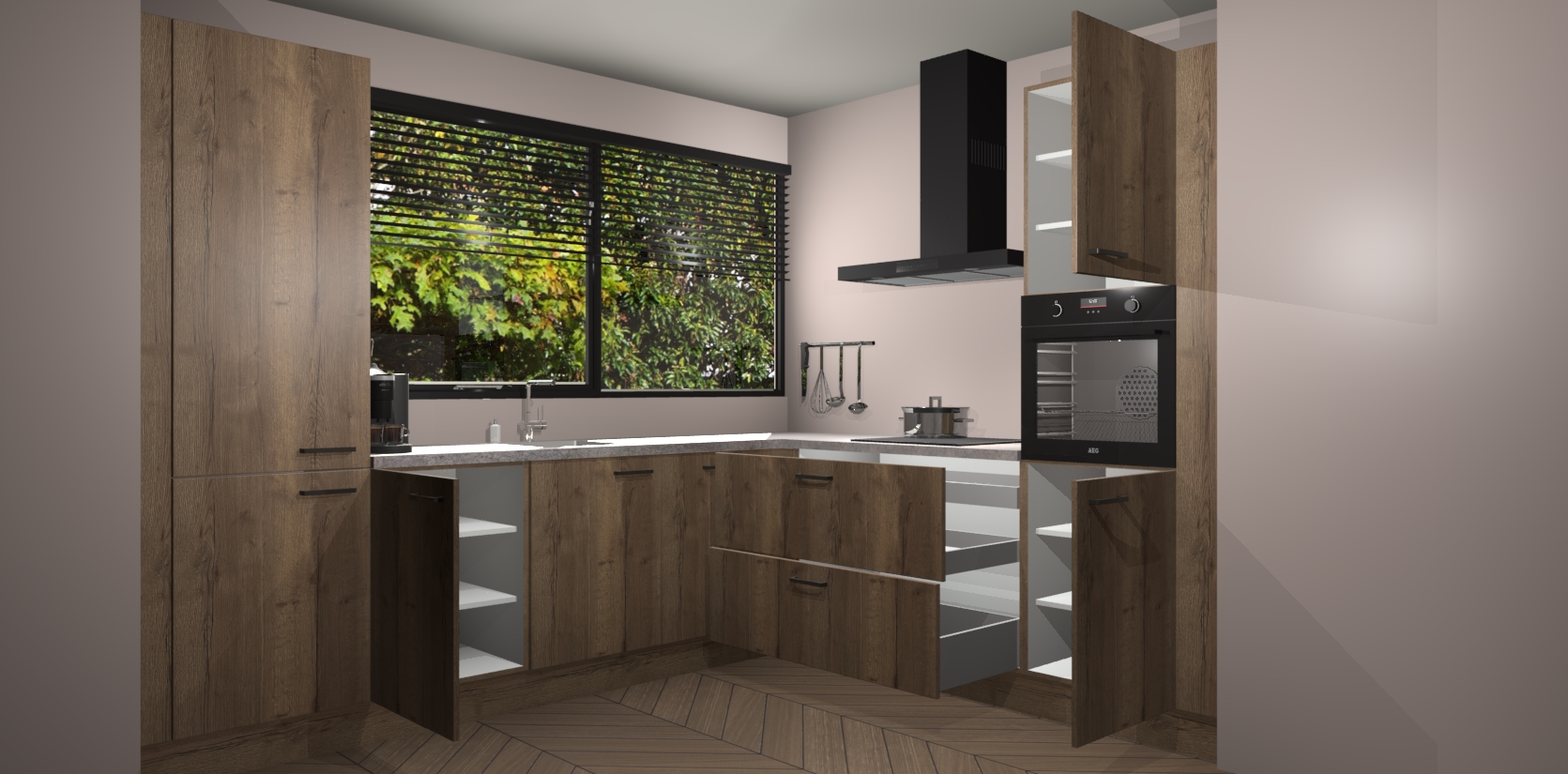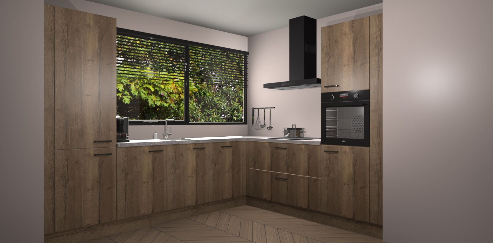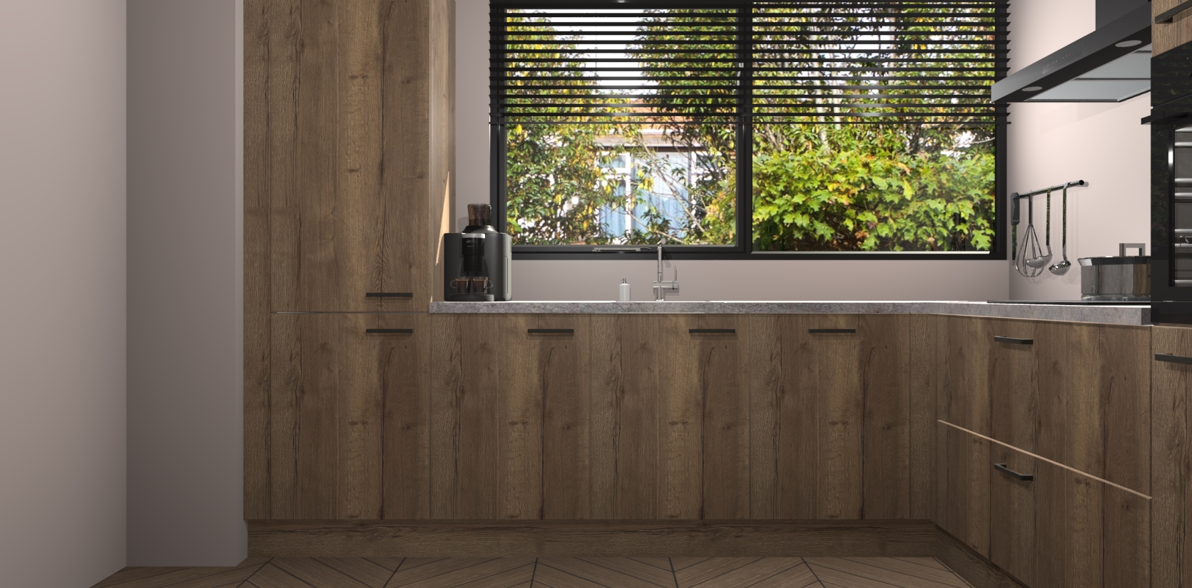 Wij presenteren de revolutie in keukens: de chocolade eiken keuken Vogar. Met modern design, een tijdloos uiterlijk en kasten die al voor gemonteerd worden geleverd, laat deze stijlvolle keuken uw kookervaring op een hele nieuwe manier transformeren.