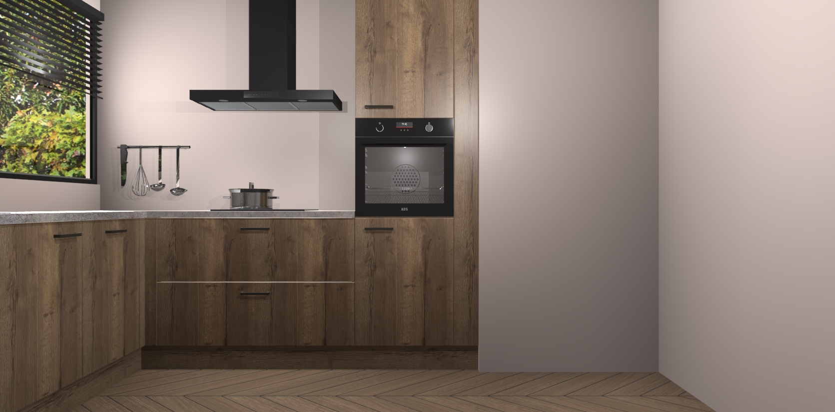 Met een modern, tijdloos design en ruime opslagruimte, zult u zich in no-time thuis voelen in uw nieuwe keuken. Uw leven wordt eenvoudiger met de soft-close deuren die voor het ultieme stille comfort zorgen - geen geluid dat u stoort terwijl u kookt. Ook is de keuken voorzien van 5 ingebouwde apparaten: een oven, inductie kookplaat, afzuigkap, vaatwasser en koelkast. Deze kunnen gemakkelijk na bestelling worden bijgewerkt naar AEG - waardoor uw luxe ervaring compleet is.