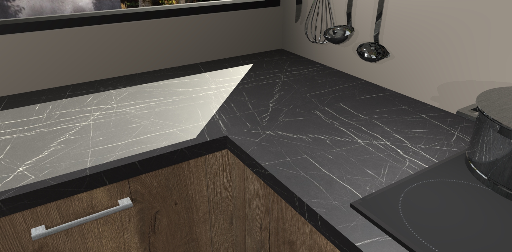 - Bij een hoekwerkblad zijn de hoeken in gevreesd en op maat gemaakt