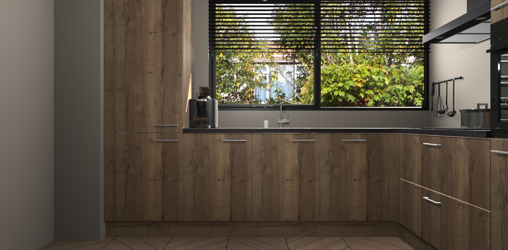 Wij presenteren de revolutie in keukens: de chocolade eiken keuken Vogar. Met modern design, een tijdloos uiterlijk en kasten die al voor gemonteerd worden geleverd, laat deze stijlvolle keuken uw kookervaring op een hele nieuwe manier transformeren.