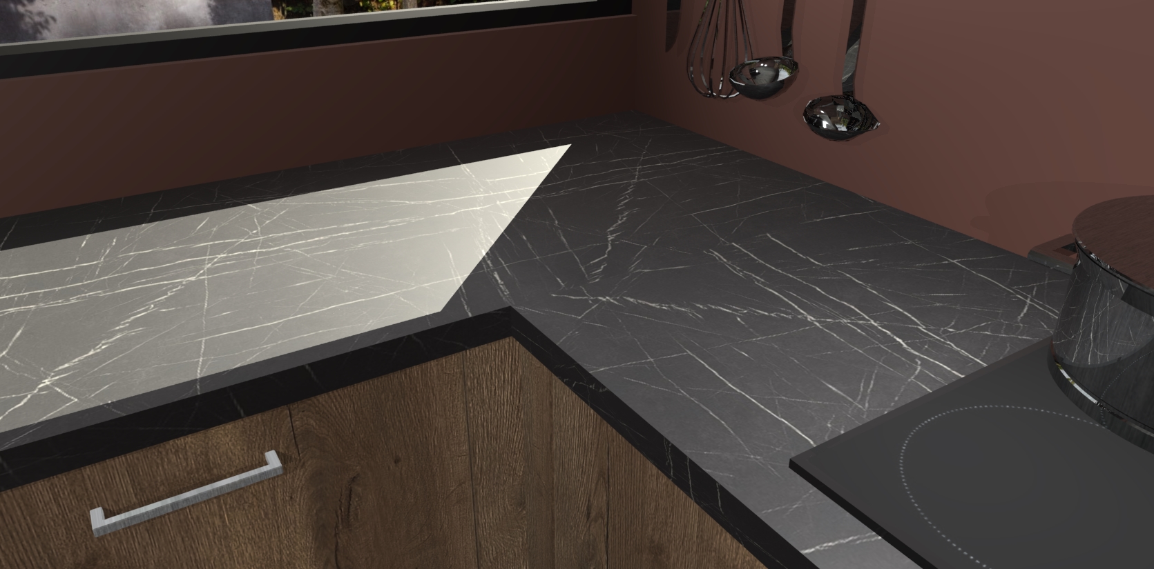 - Bij een hoekwerkblad zijn de hoeken in gevreesd en op maat gemaakt