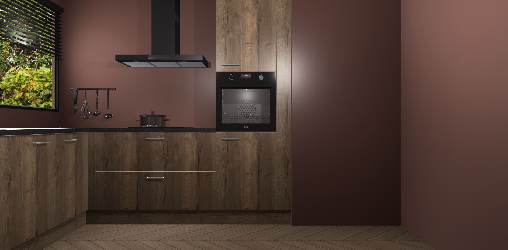 Met een modern, tijdloos design en ruime opslagruimte, zult u zich in no-time thuis voelen in uw nieuwe keuken. Uw leven wordt eenvoudiger met de soft-close deuren die voor het ultieme stille comfort zorgen - geen geluid dat u stoort terwijl u kookt. Ook is de keuken voorzien van 5 ingebouwde apparaten: een oven, inductie kookplaat, afzuigkap, vaatwasser en koelkast. Deze kunnen gemakkelijk na bestelling worden bijgewerkt naar AEG - waardoor uw luxe ervaring compleet is.