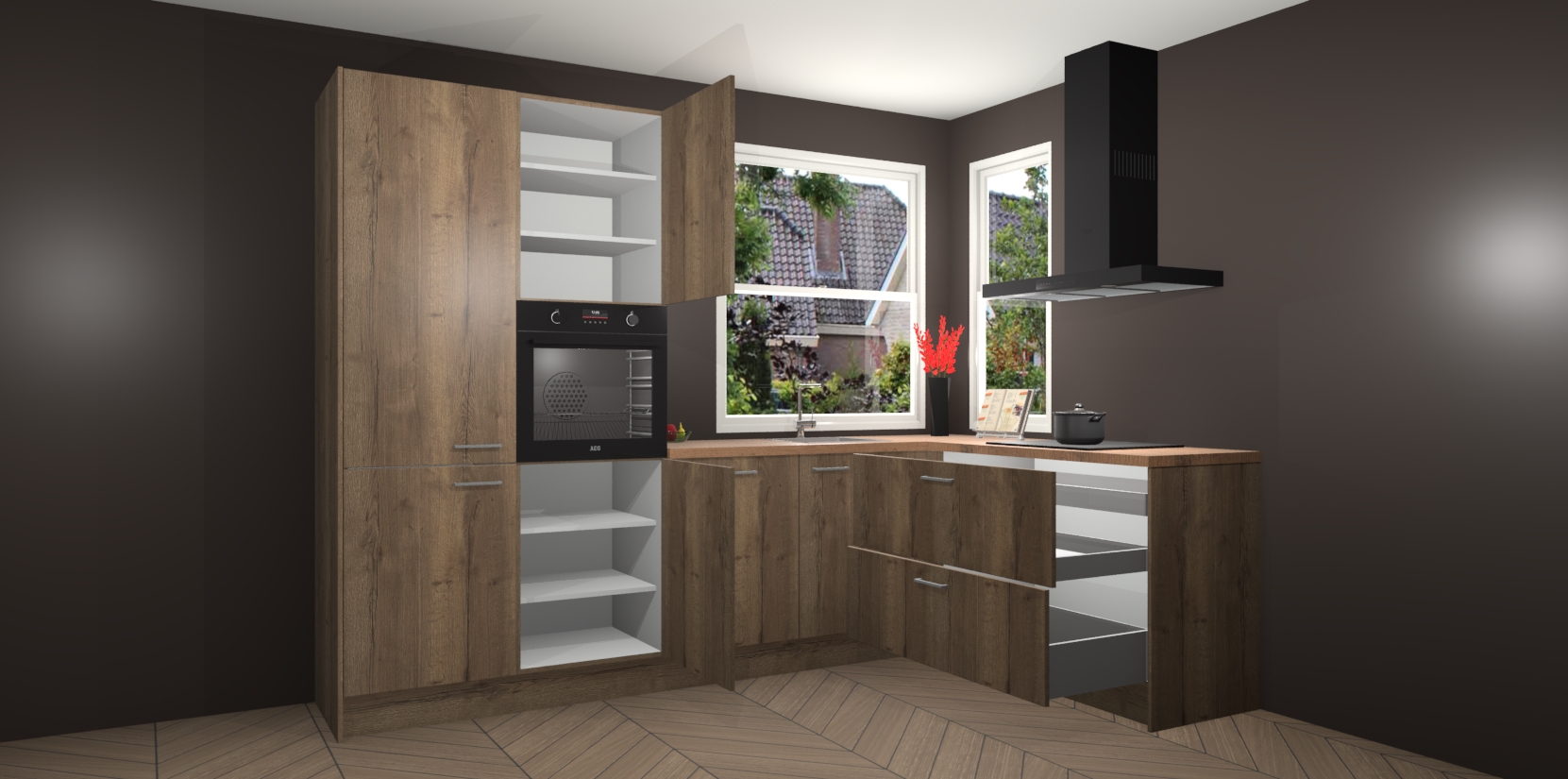Het is tijd om halsoverkop verliefd te worden op uw droomkeuken, en de Chocolade Eiken keuken Kotor is precies wat u nodig heeft! Met een moderne, tijdloze constructie en een mix van prachtig design zal deze luxe hoekkeuken zeker opvallen. Maar laat de schoonheid u niet afleiden van de indrukwekkende functies - want onder dit alles schuilt een onovertroffen hoeveelheid lekkers!